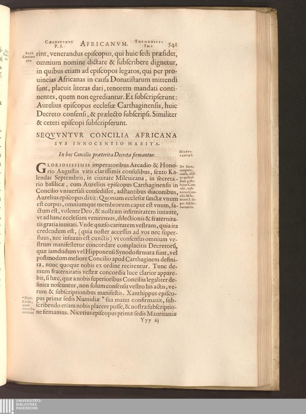 Seqvvntvr Concilia Africana Svb Innocentio Habita.