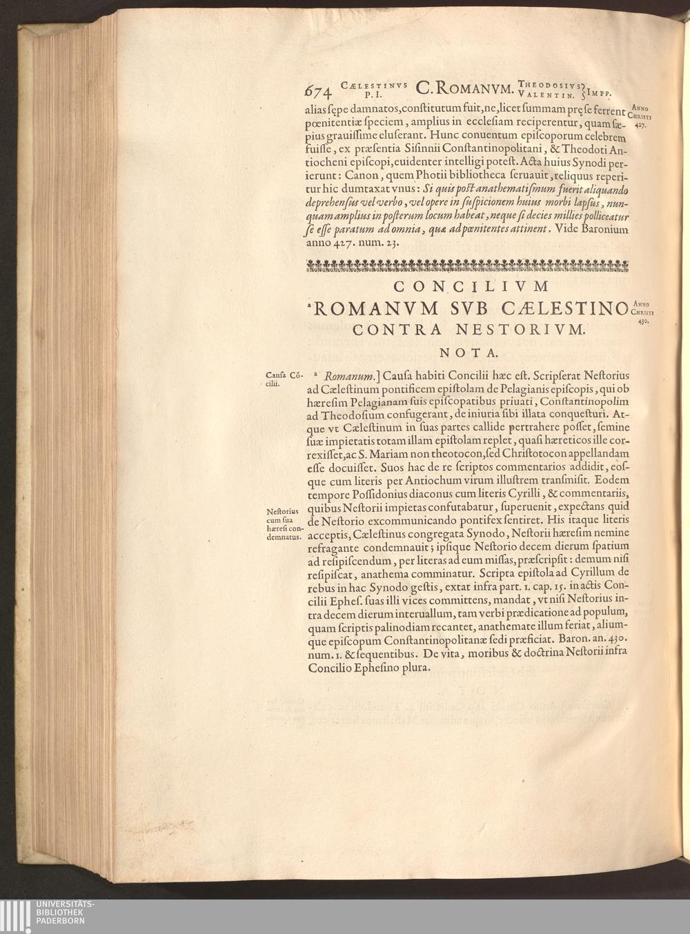 Concilivm Romanvm Svb Caelestino Contra Nestorivm.