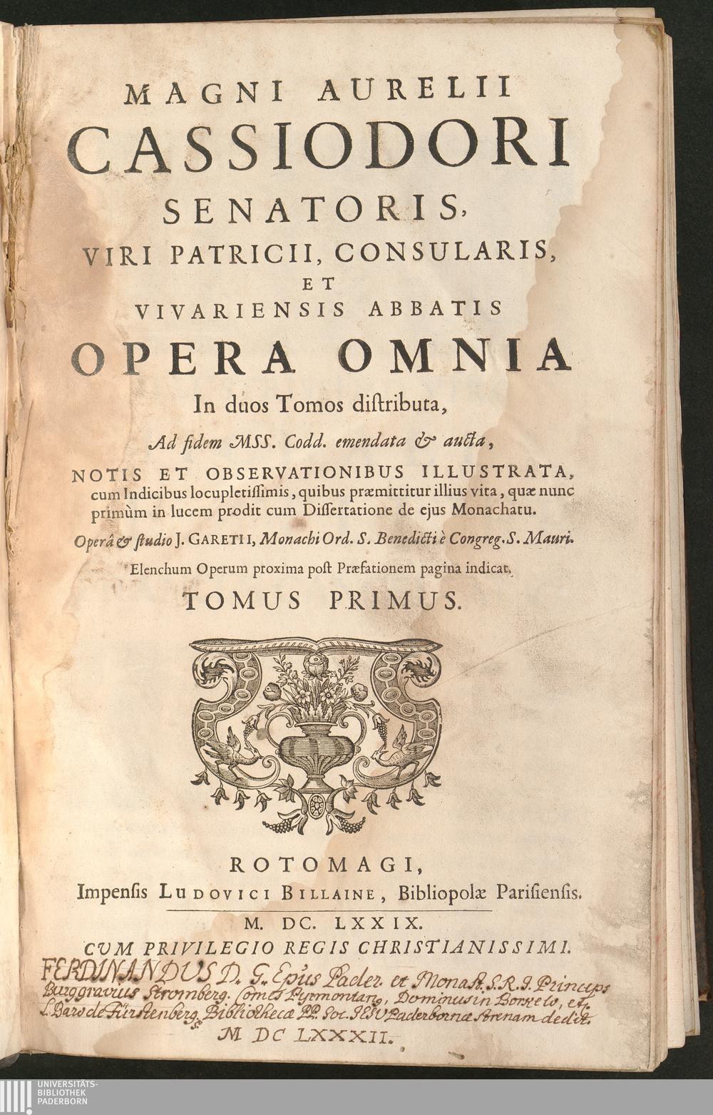 Magni Aurelii Cassiodori Senatoris, Viri Patricii, Consularis, Et Vivariensis Abbatis[...]