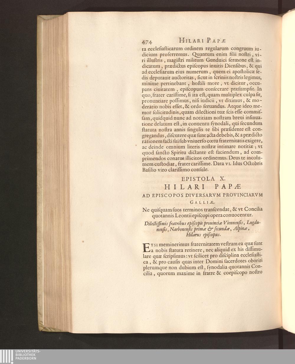 Epistola X. Hilari papæ ad episcopos Galliæ.