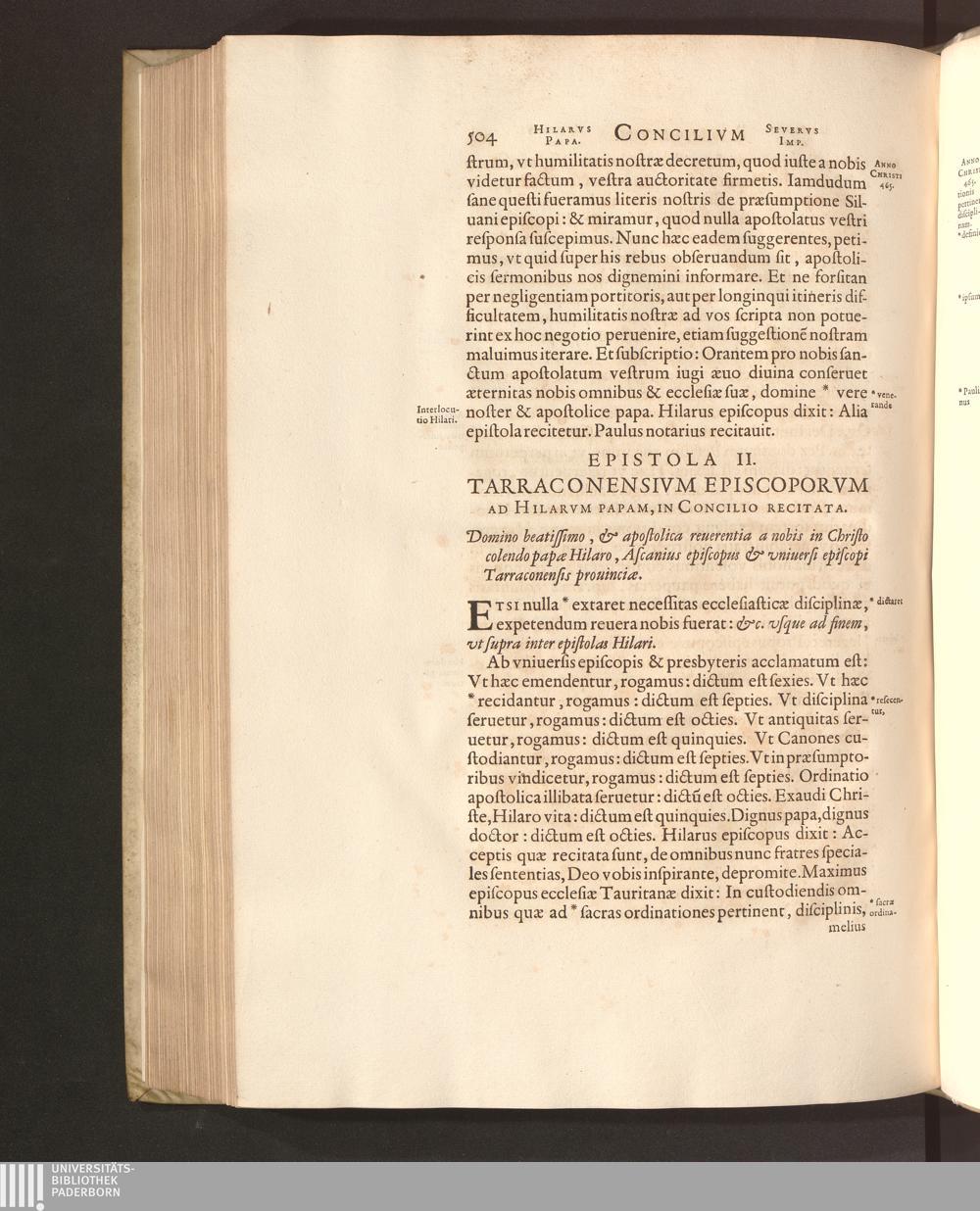 Epistola II. Tarraconensivm Episcoporvm Ad Hilarvm Papam, In Concilio Recitata.