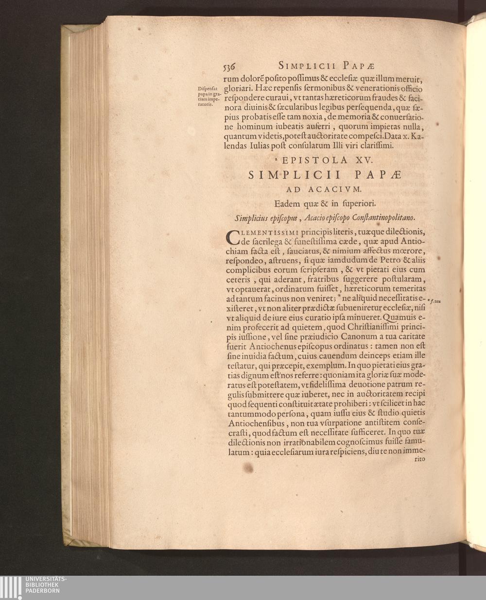 Epistola XV. Simplicii papæ ad Acacium.