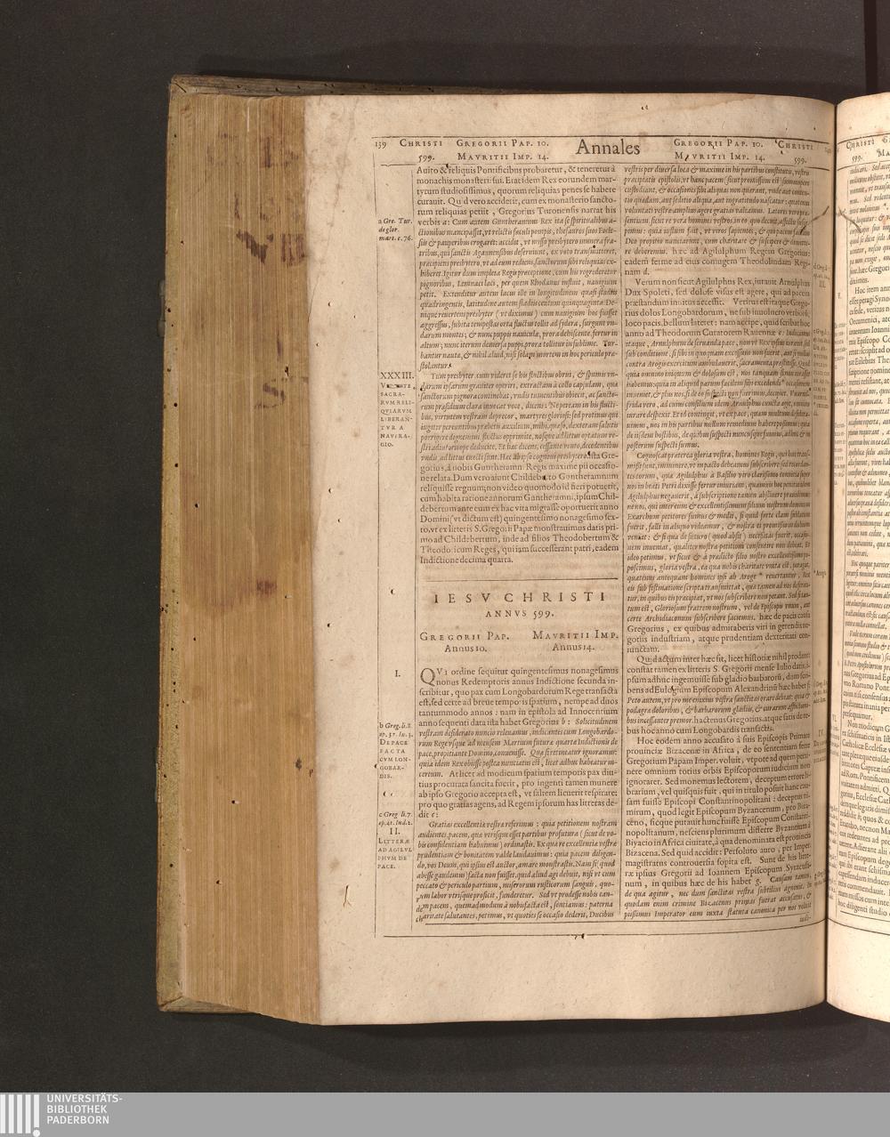 Iesv Christi Annvs 599. Gregorii Pap. Annus 10. Mavritii Imp. Annus 14.