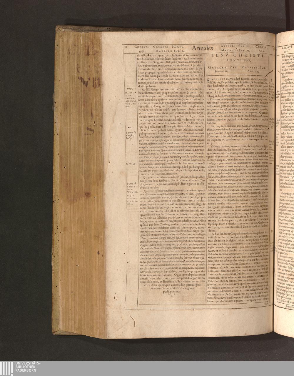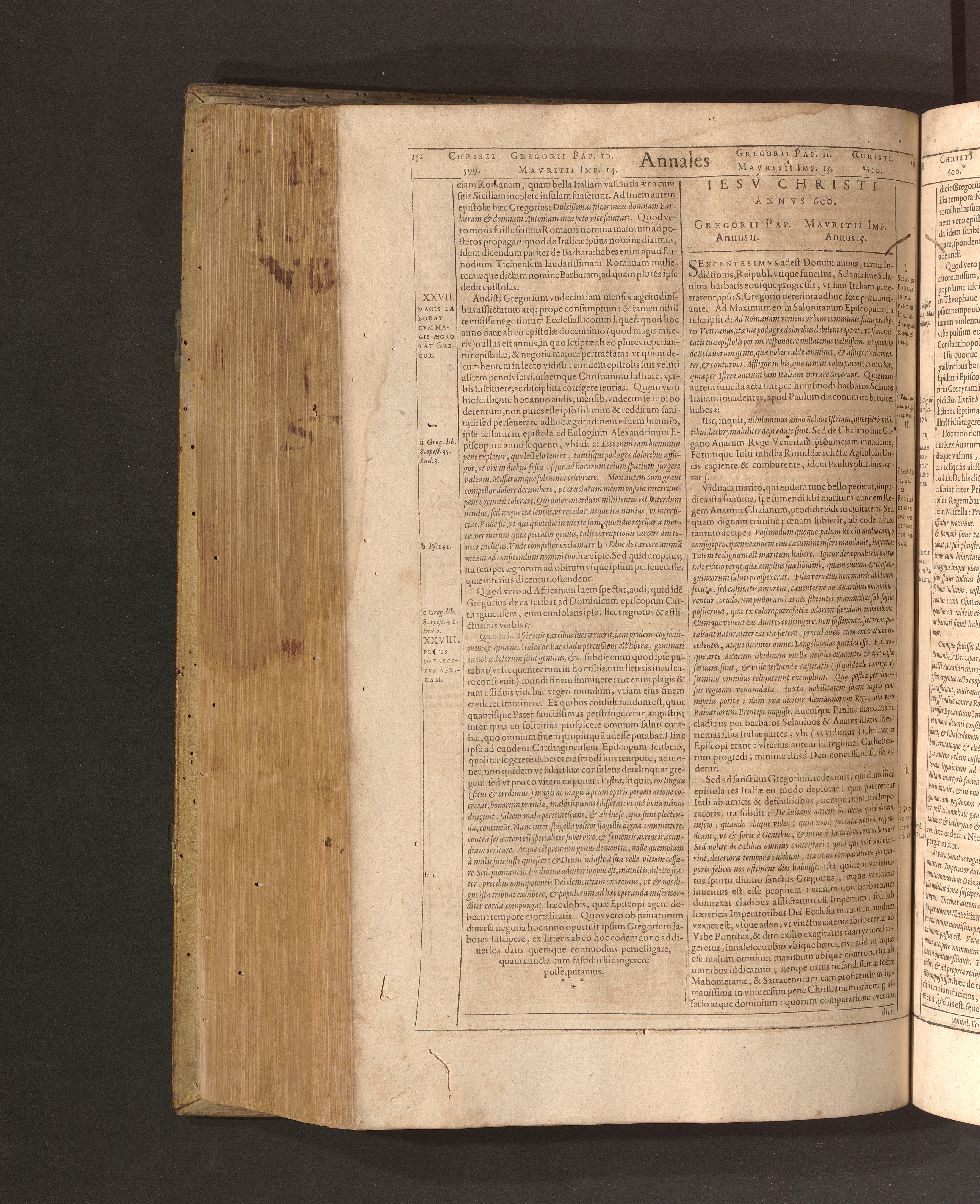 Iesv Christi Annvs 600. Gregorii Pap. Annus 11. Mavritii Imp. Annus 15.