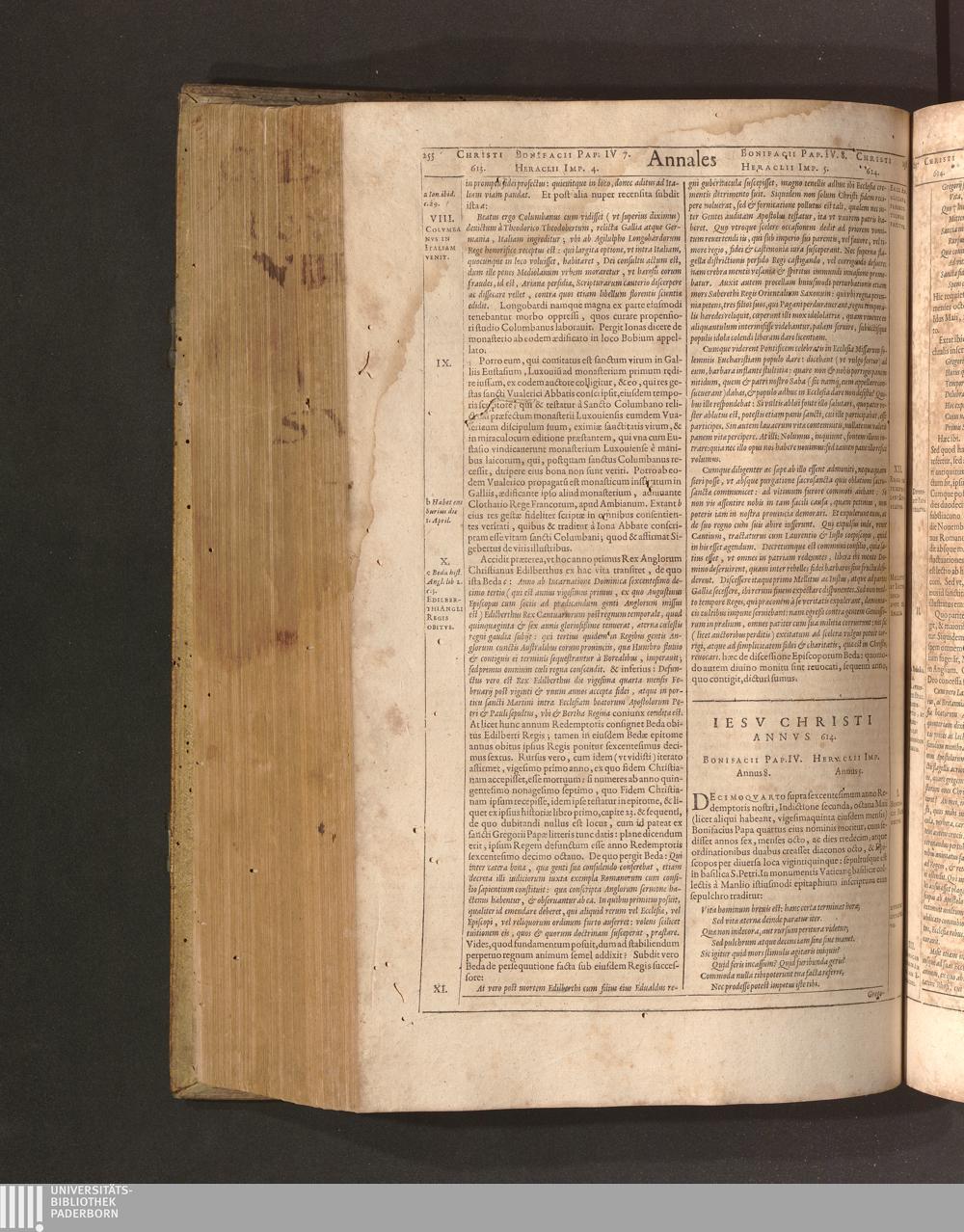 Iesv Christi Annvs 614. Bonifacii Pap. IV. Annus 8. Heraclii Imp. Annus 5.