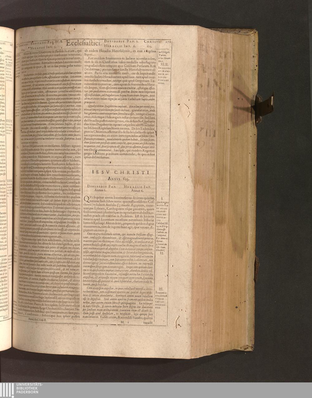 Iesv Christi Annvs 615. Devsdedit Pap. Annus 1. Heraclii Imp. Annus 6.