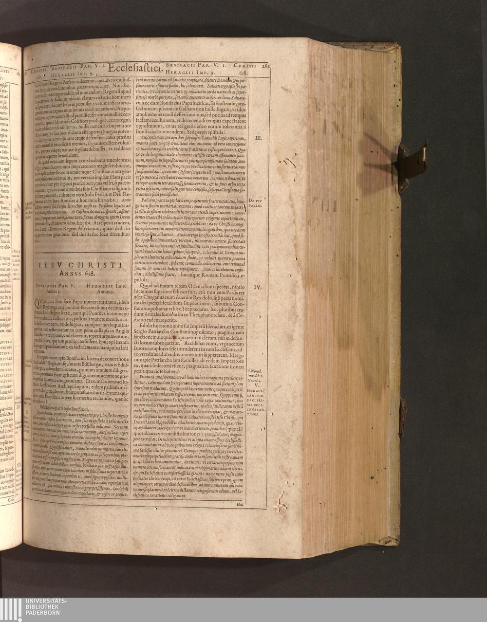 Iesv Christi Annvs 618. Bonifacii Pap. V. Annus 1. Heraclii Imp. Annus 9.
