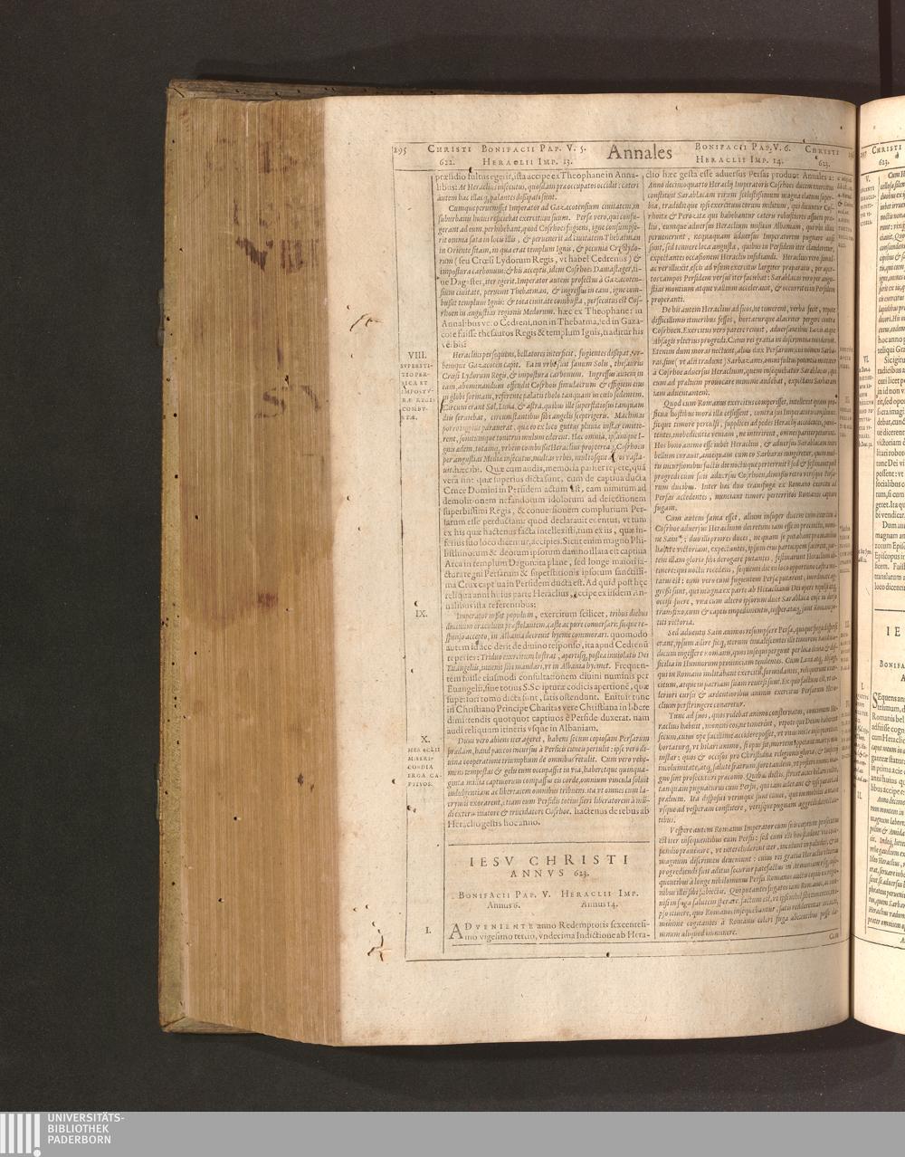 Iesv Christi Annvs 623. Bonifacii Pap. V. Annus 6 Heraclii Imp. Annus 14.