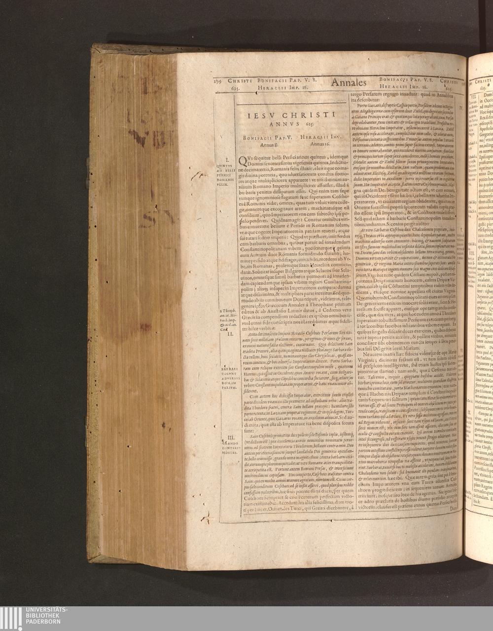 Iesv Christi Annvs 625. Bonifacii Pap. V. Annus 8. Heraclii Imp. Annus 16.