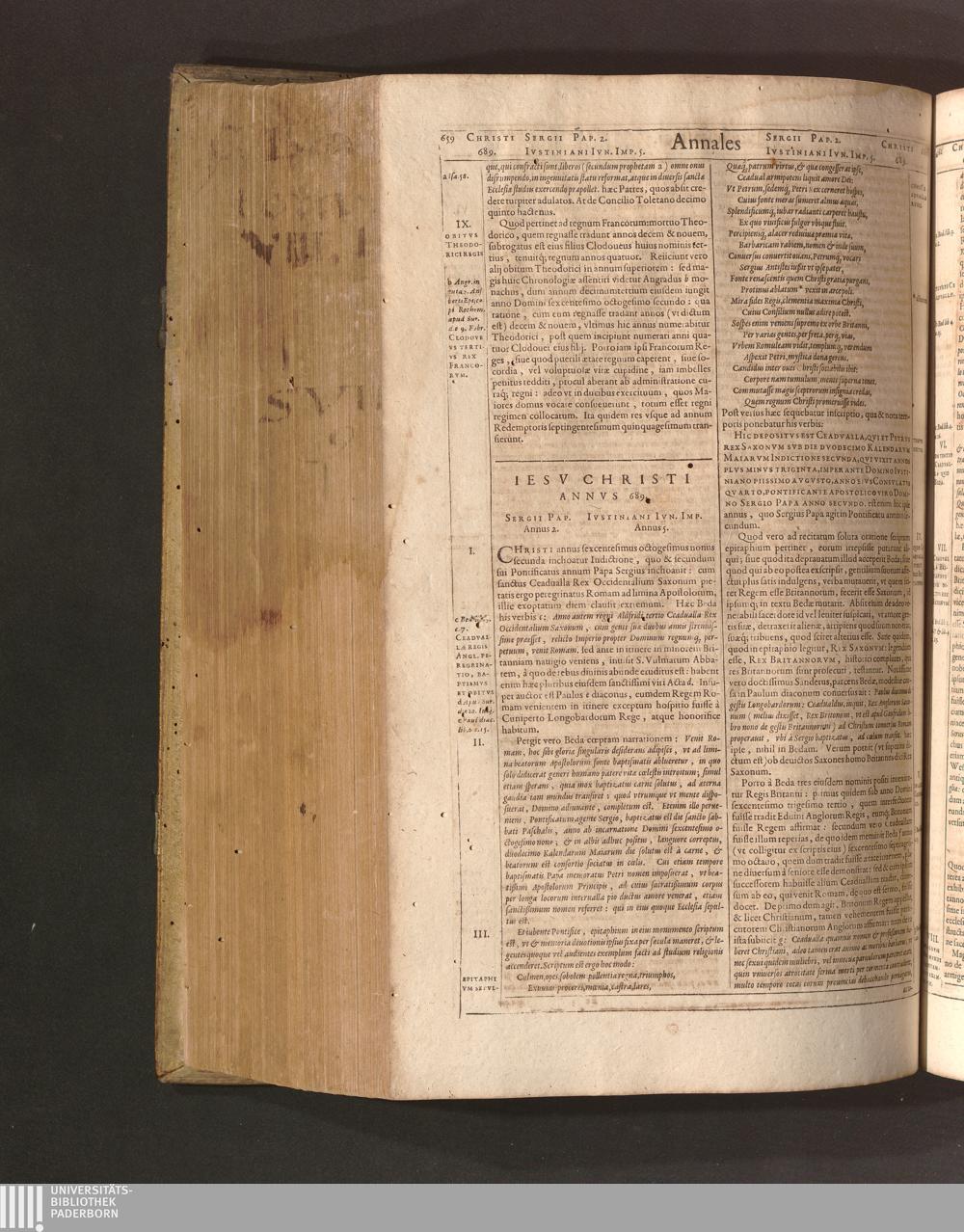 Iesv Christi Annvs 689. Sergii Pap. Annus 2. Ivstiniani Ivn. Imp. Annus 5.