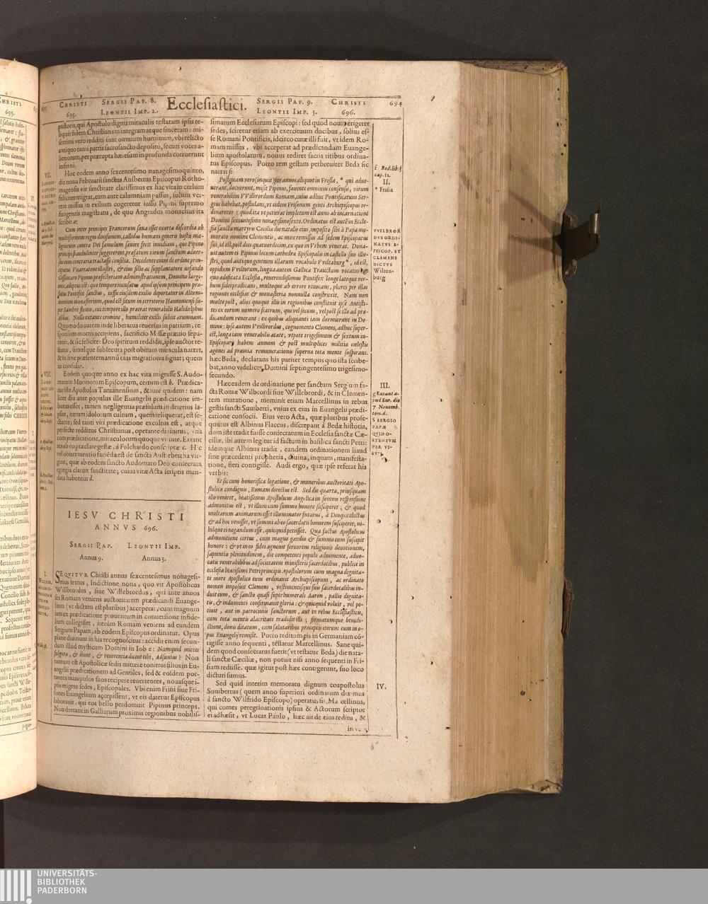 Iesv Christi Annvs 696. Sergii Pap. Annus 9. Leontii Imp. Annus 3.