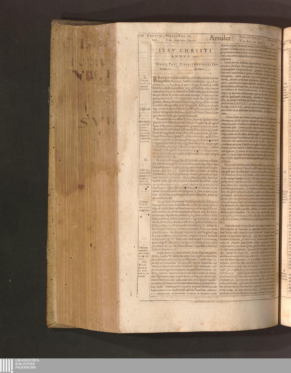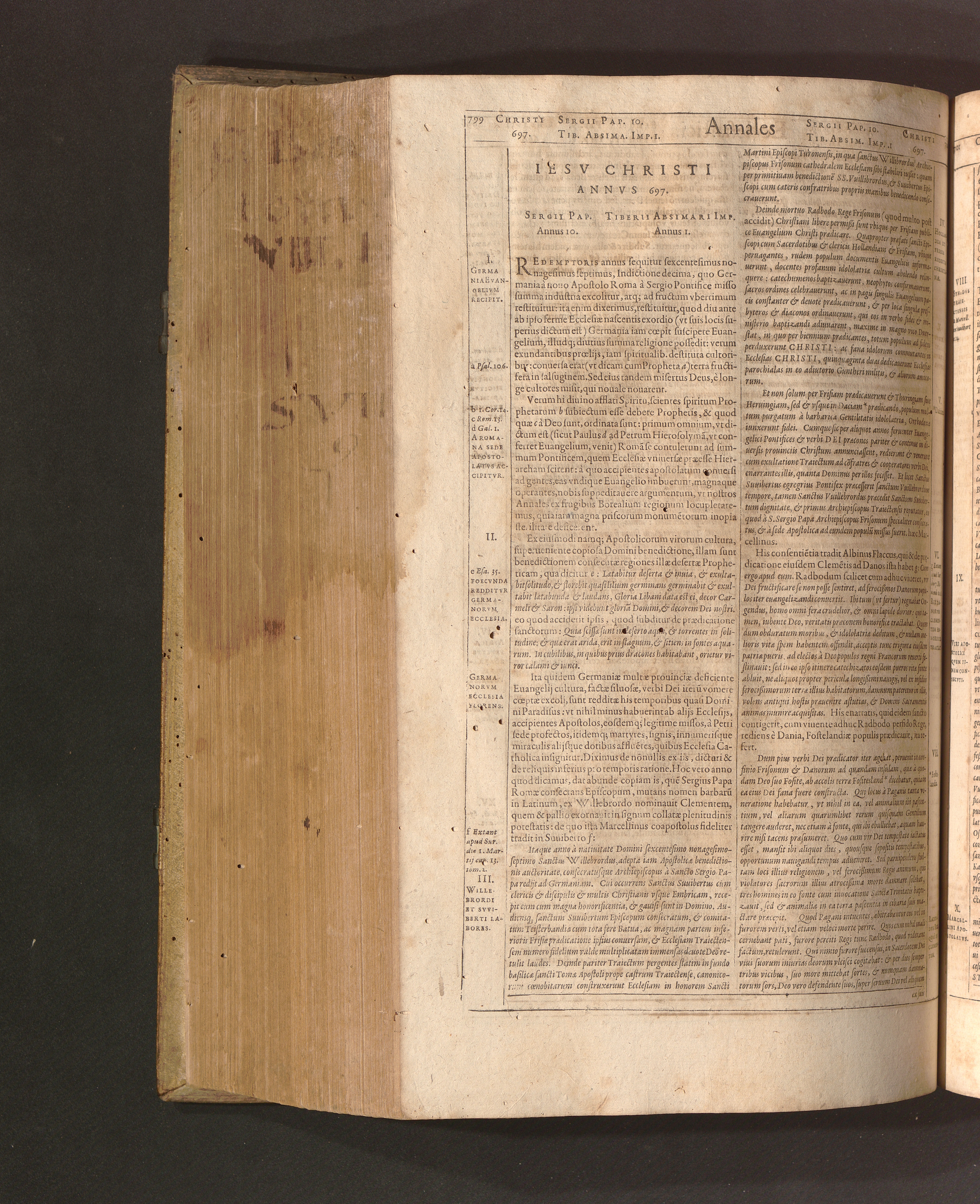 Iesv Christi Annvs 697. Sergii Pap. Annus 10. Tiberii Absimari Imp. Annus 1.