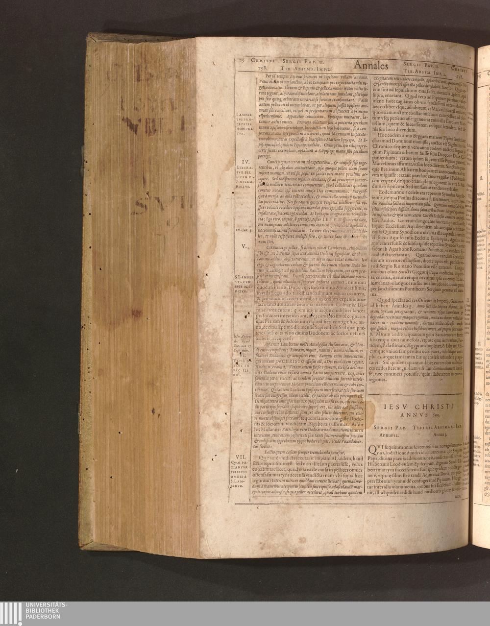 Iesv Christi Annvs 699. Sergii Pap. Annus 12. Tiberii Absimari. Imp. Annus 3.