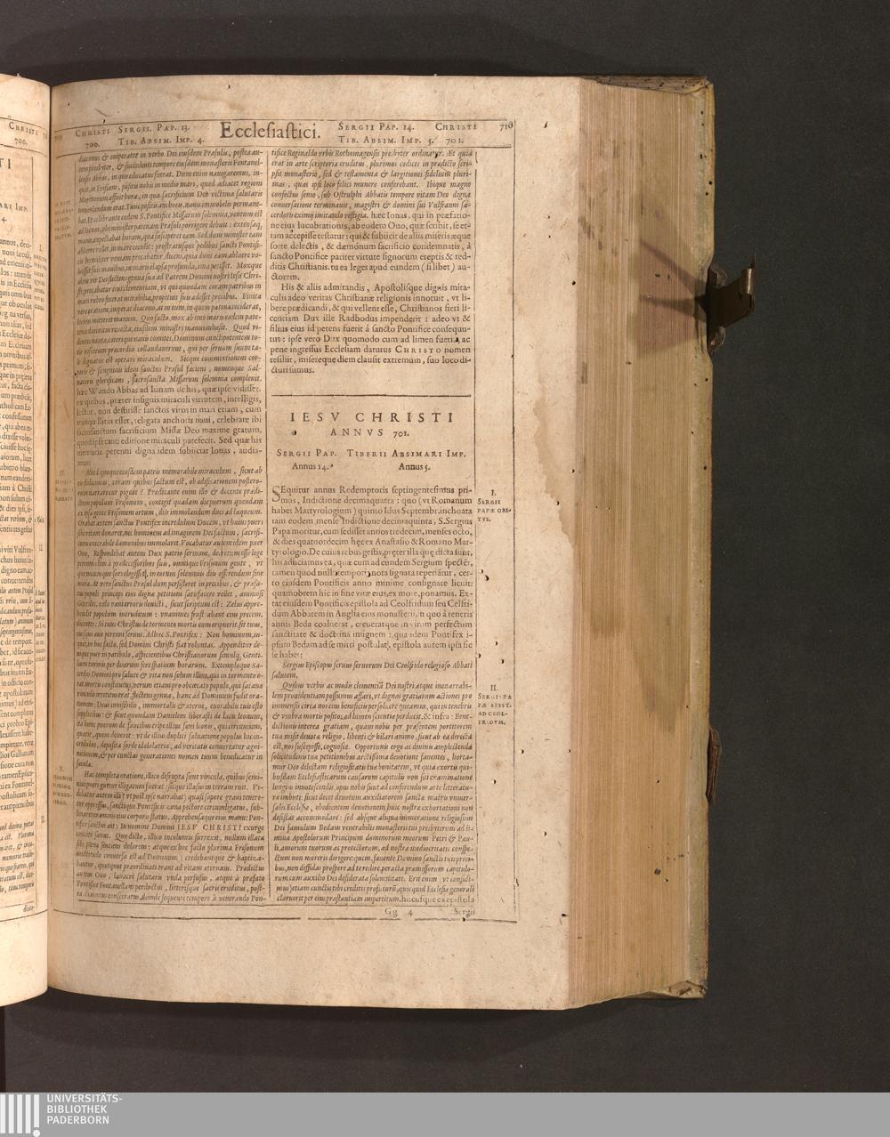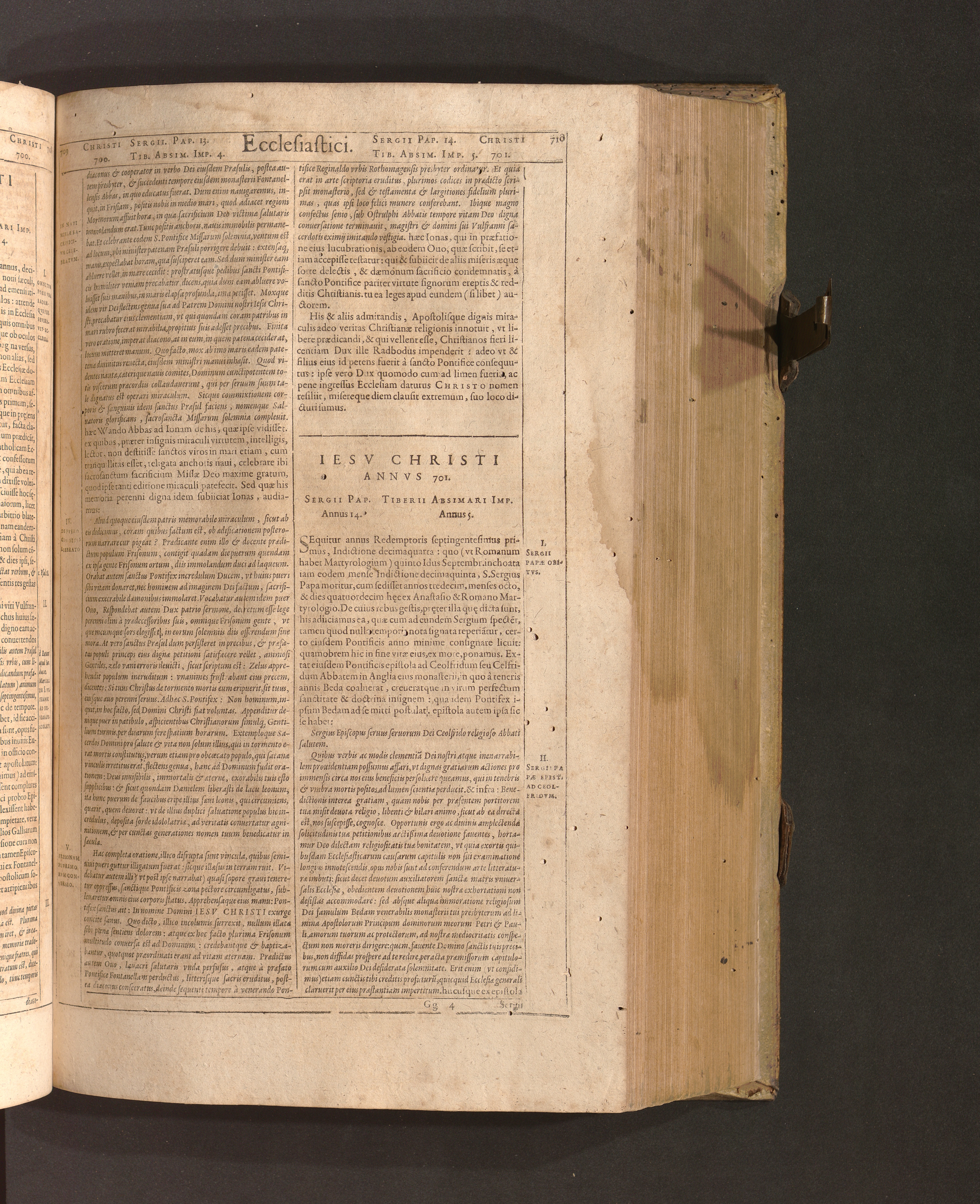 Iesv Christi Annvs 701. Sergii Pap. Annus 14. Tiberii Absimari Imp. Annus 5.