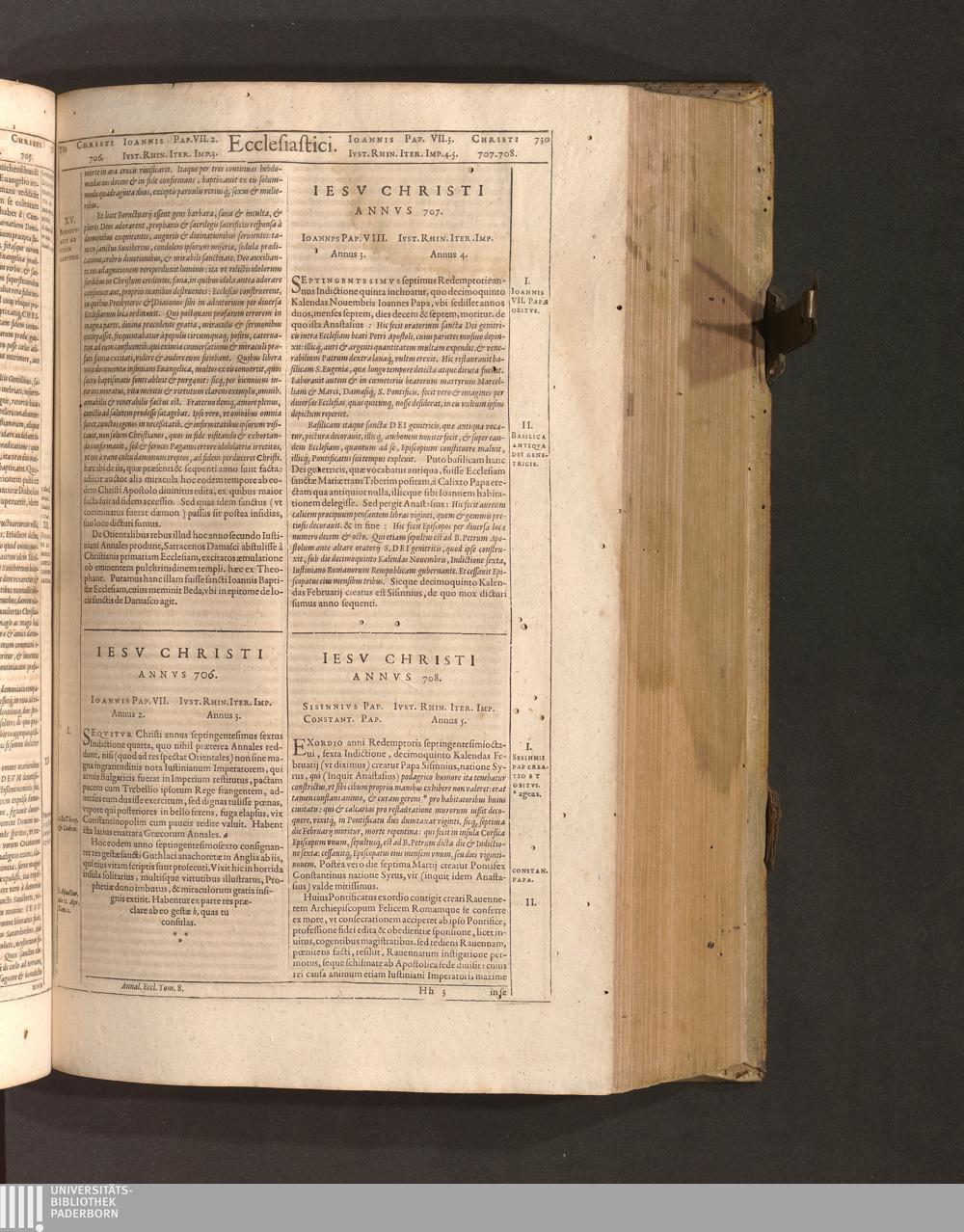 Iesv Christi Annvs 708. Sisinnivs Pap. Constant. Pap. Ivst. Rhin. Iter. Imp. Annus[...]