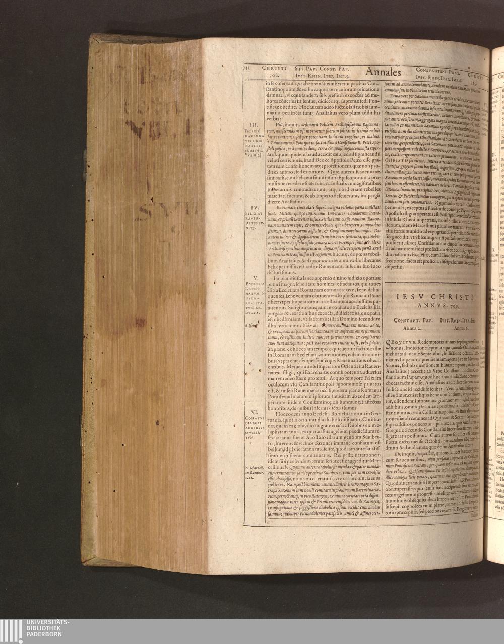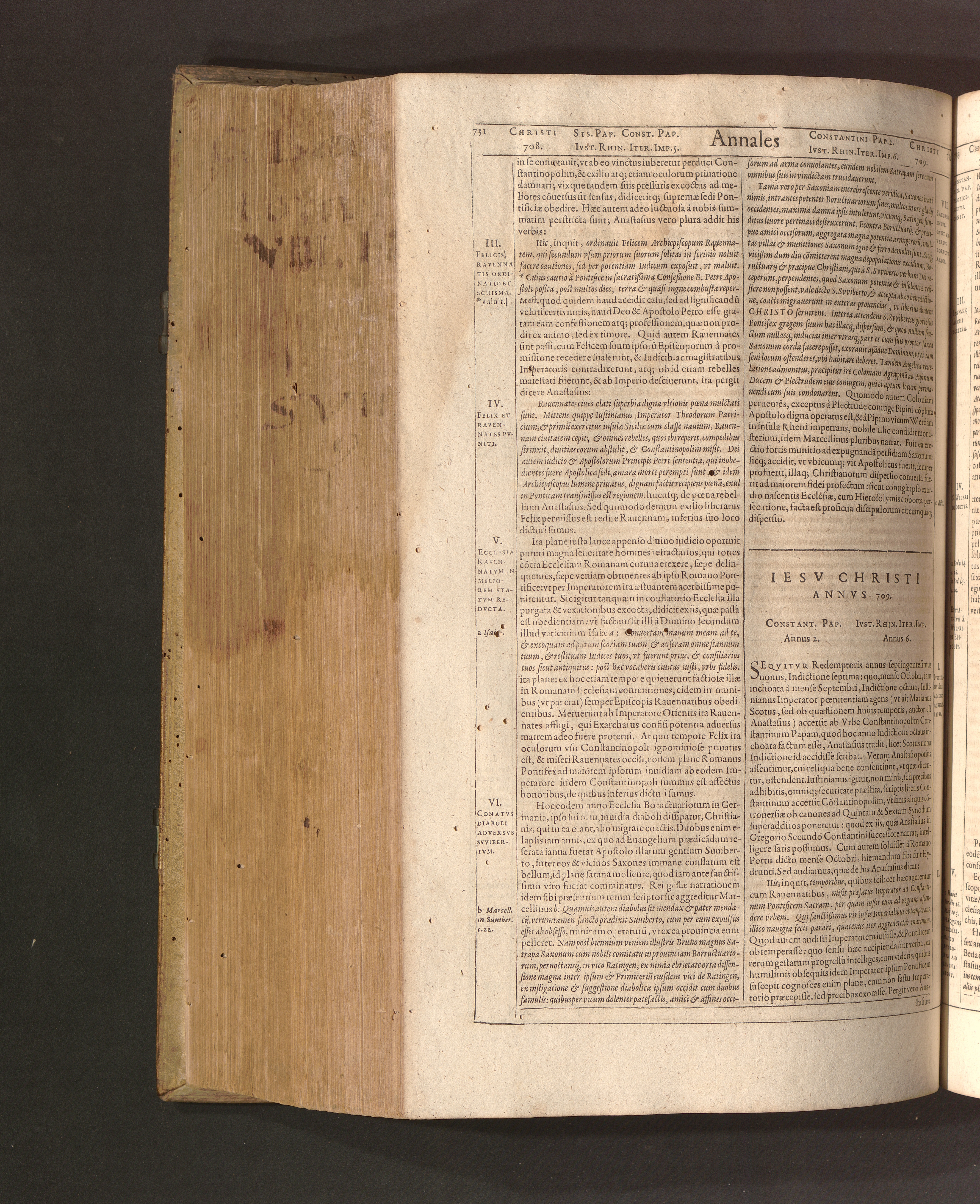 Iesv Christi Annvs 709. Constant. Pap. Annus 2. Ivst. Rhin. Iter. Imp. Annus 6.