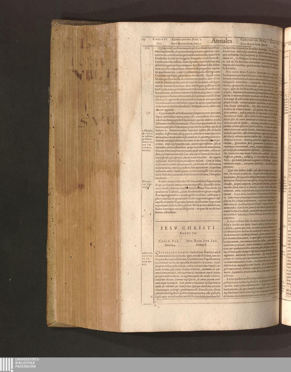 Iesv Christi Annvs 711. Const. Pap. Annus 4. Ivst. Rhin. Iter. Imp. Annus 8.