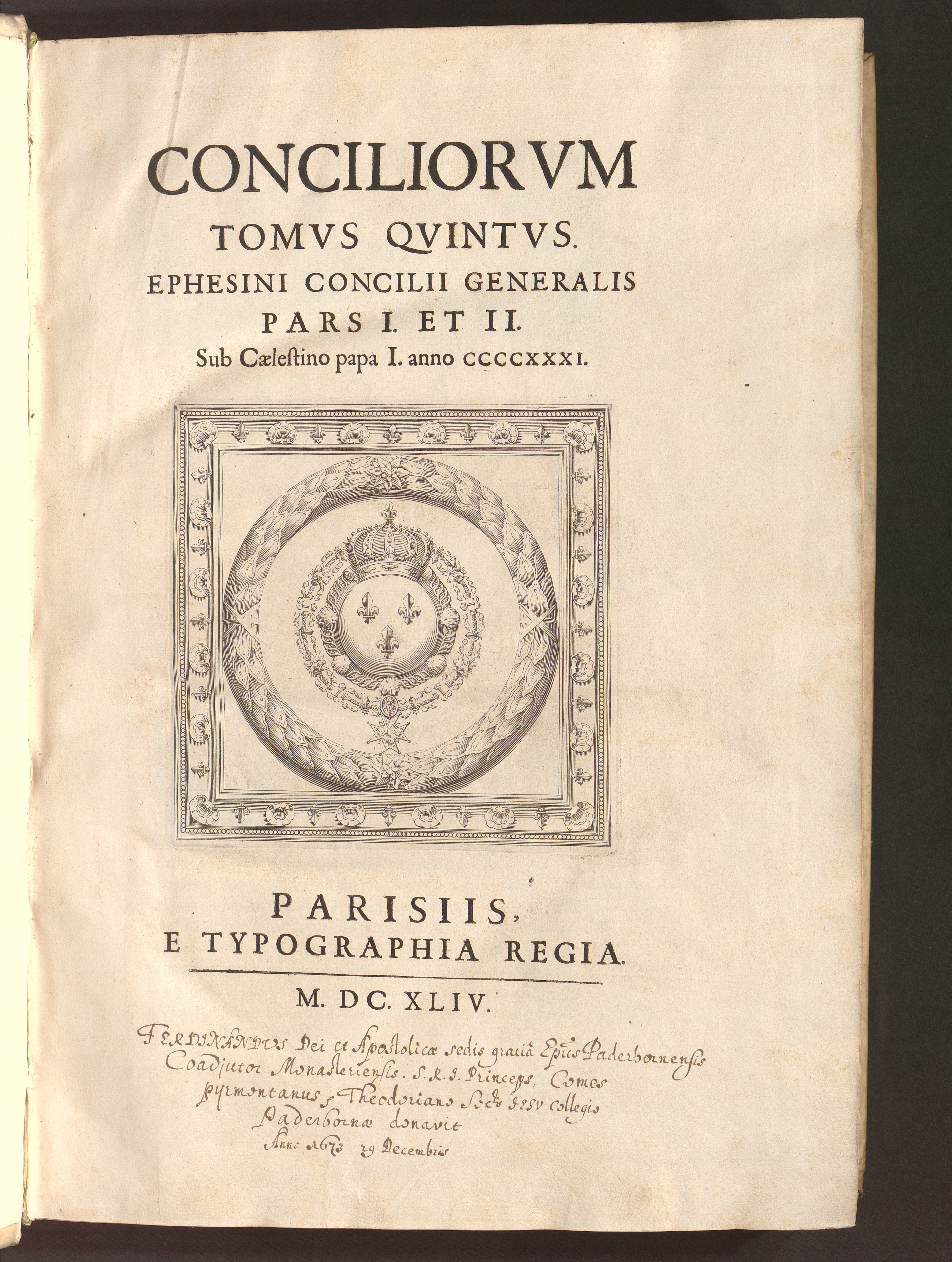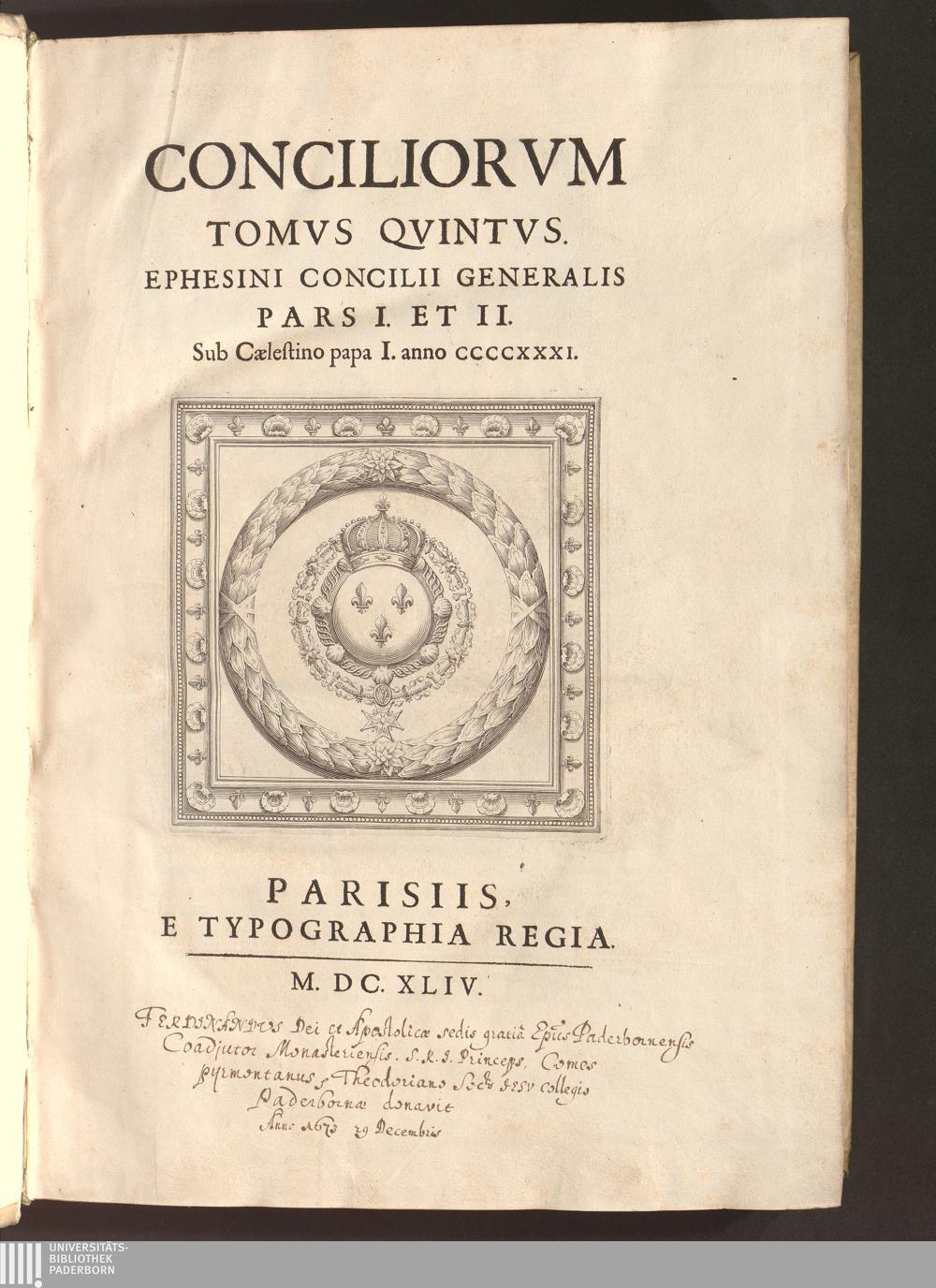 Tomvs Qvintvs (1644) Ephesini Concilii Generalis Pars I. Et II. Sub Cælestino papa I. anno CCCCXXXI.