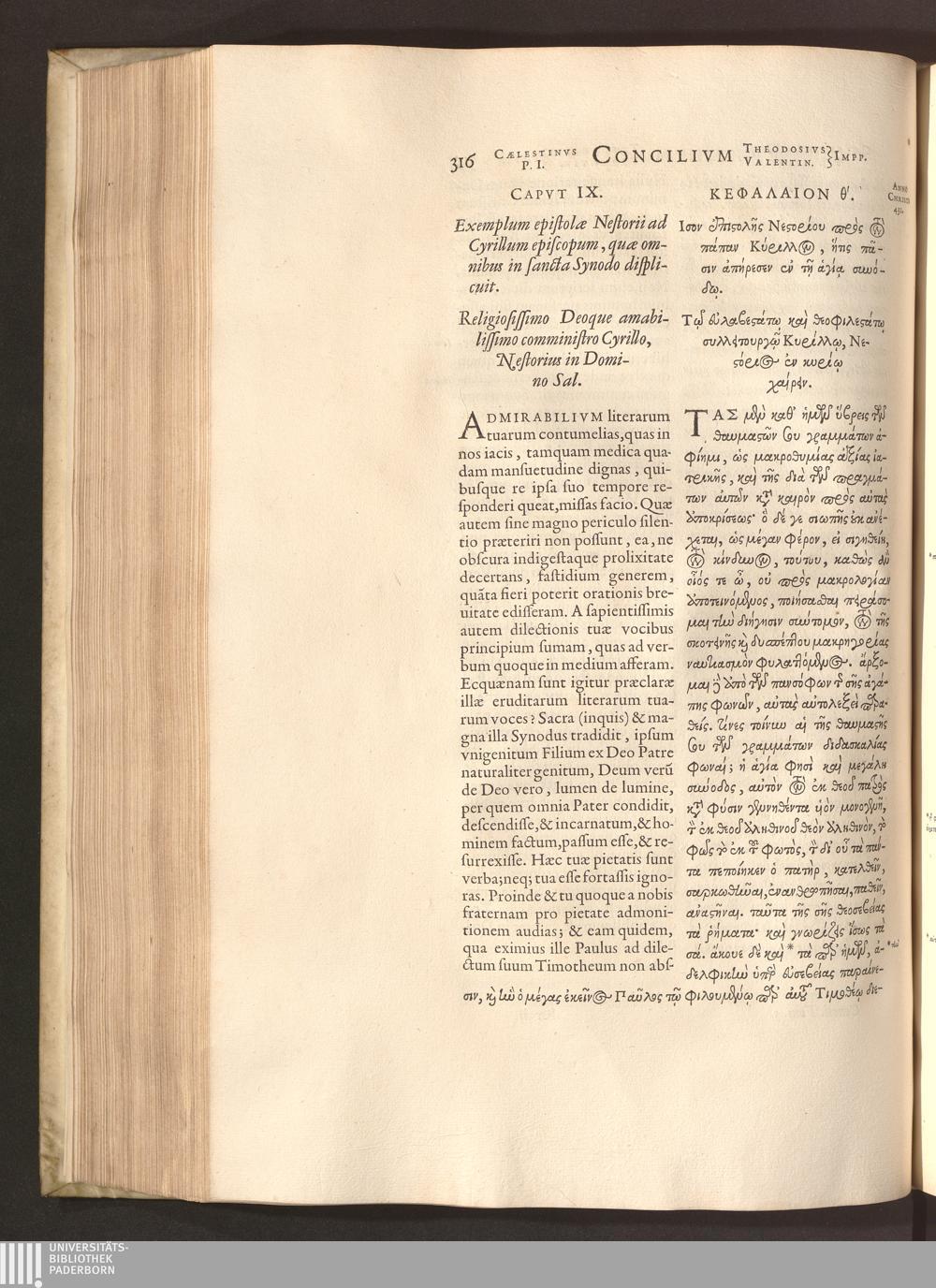Capvt IX. Exemplum epistolae Nestorii ad Cyrillum episcopum, quae omnibus in sancta[...]