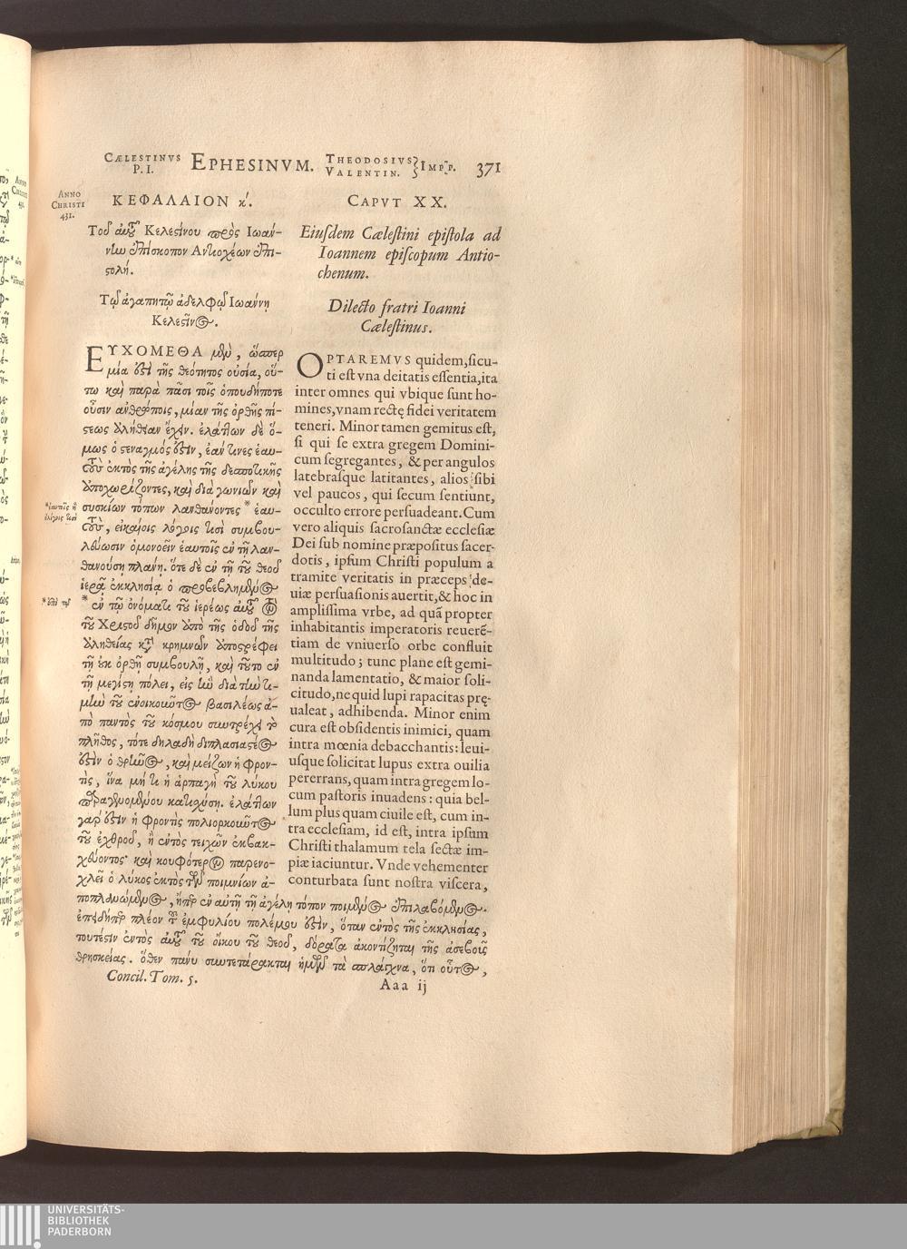 Capvt XX. Eiusdem Caelestini epistola ad Ioannem episcopum Antiochenum.