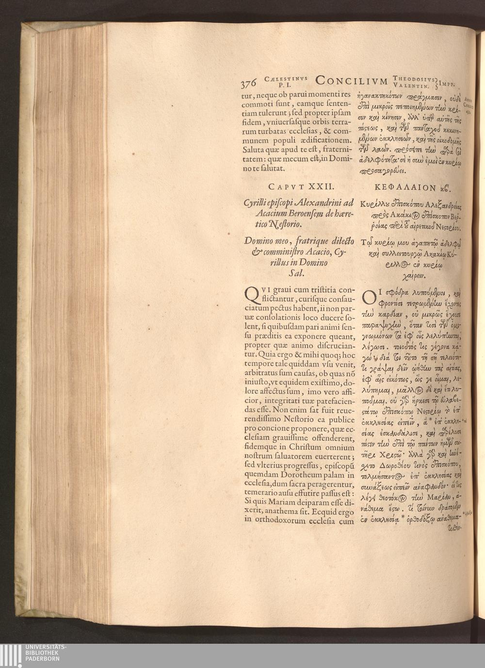 Capvt XXII. Cyrilli episcopi Alexandrini ad Acacium Beroensem de haeretico Nesto[...]
