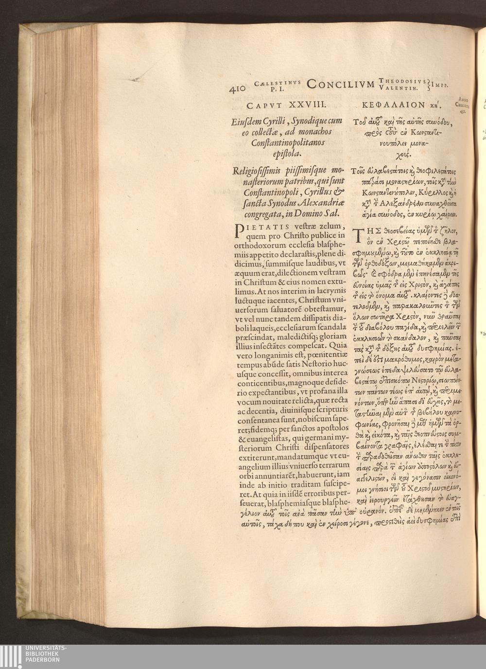 Capvt XXVIII. Eiusdem Cyrilli, Synodique cum eo collectae, ad monachos Constantinopolitanos[...]