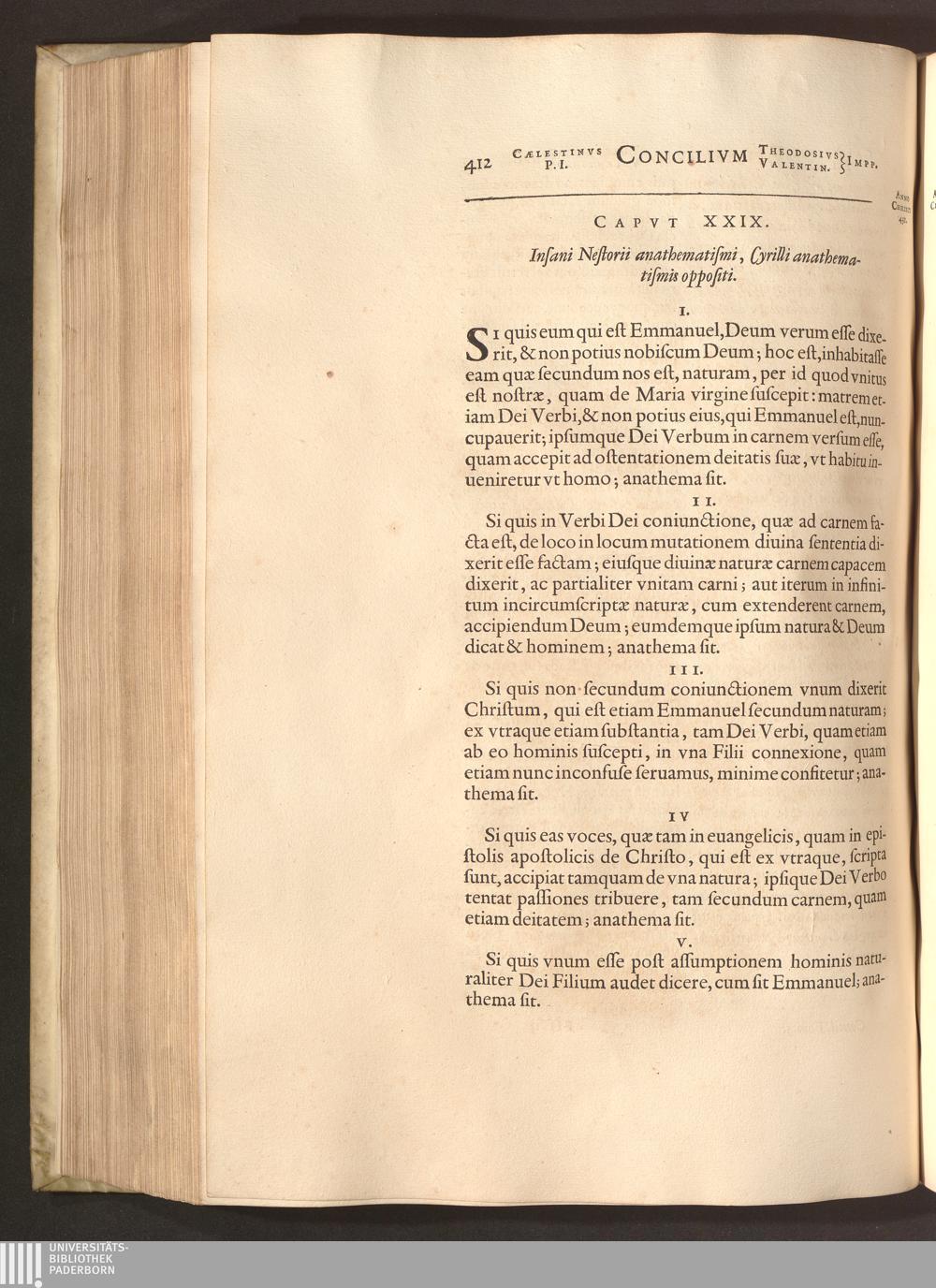 Capvt XXIX. Insani Nestorii anathematismi, Cyrilli anathematismis oppositi.
