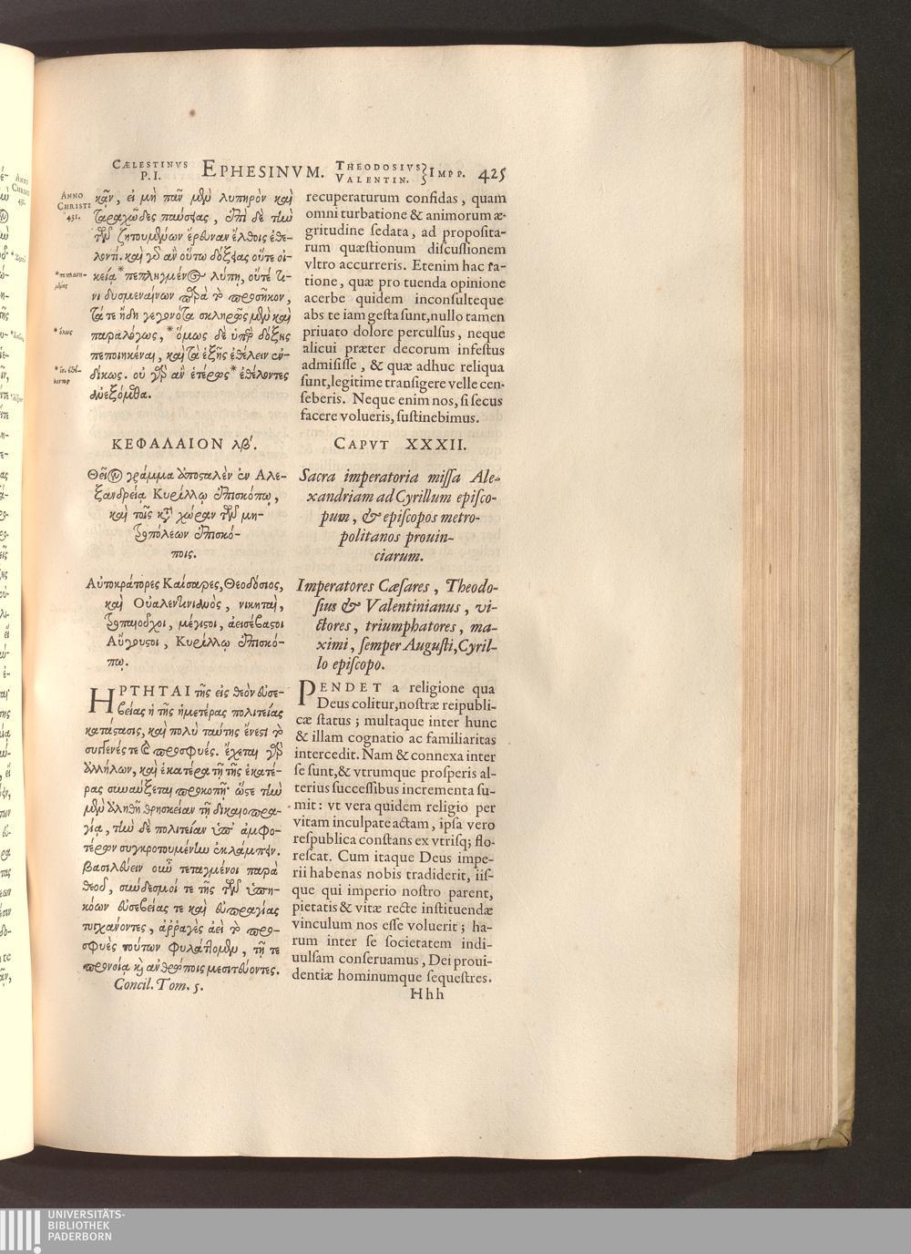 Capvt XXXII. Sacra imperatoria missa Alexandriam ad Cyrillum episcopum, & episcopos[...]