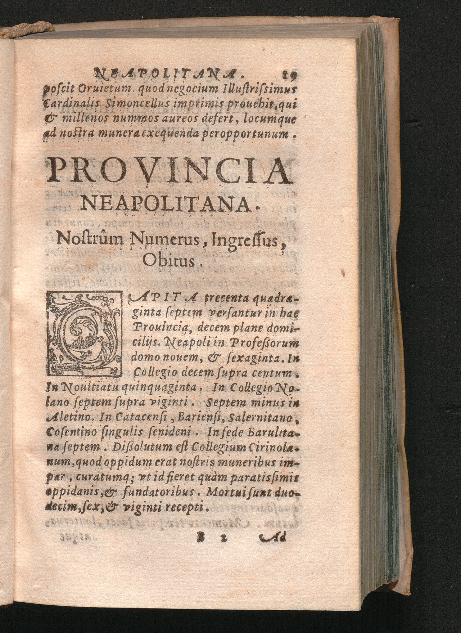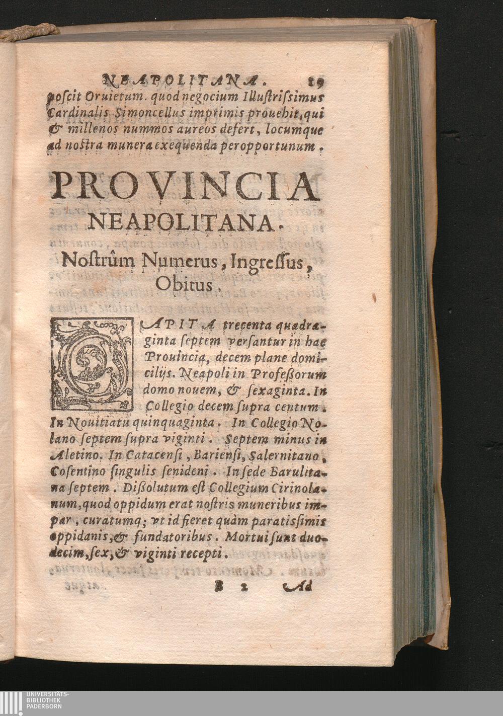 Provincia Neapolitana. Nostrûm Numerus, Ingressus, Obitus.