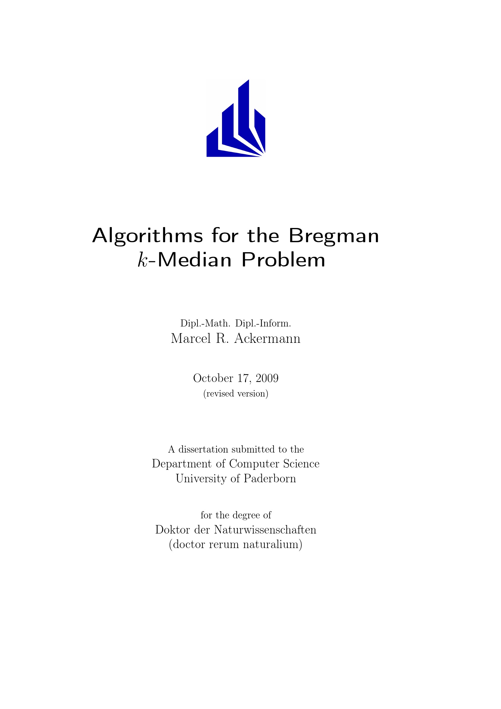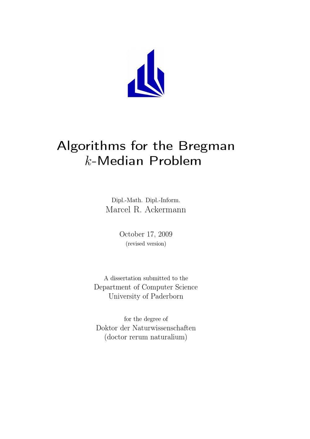 Algorithms for the Bregman k-Median problem / Marcel R. Ackermann