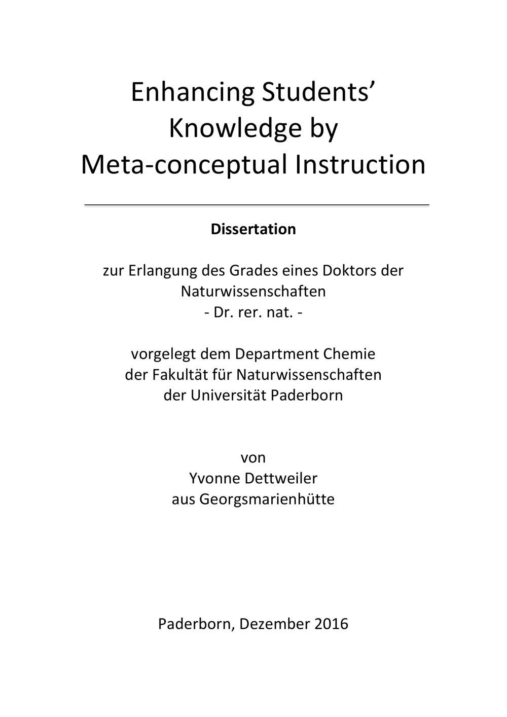 Enhancing students' knowledge by meta-conceptual instruction / von Yvonne Dettweiler