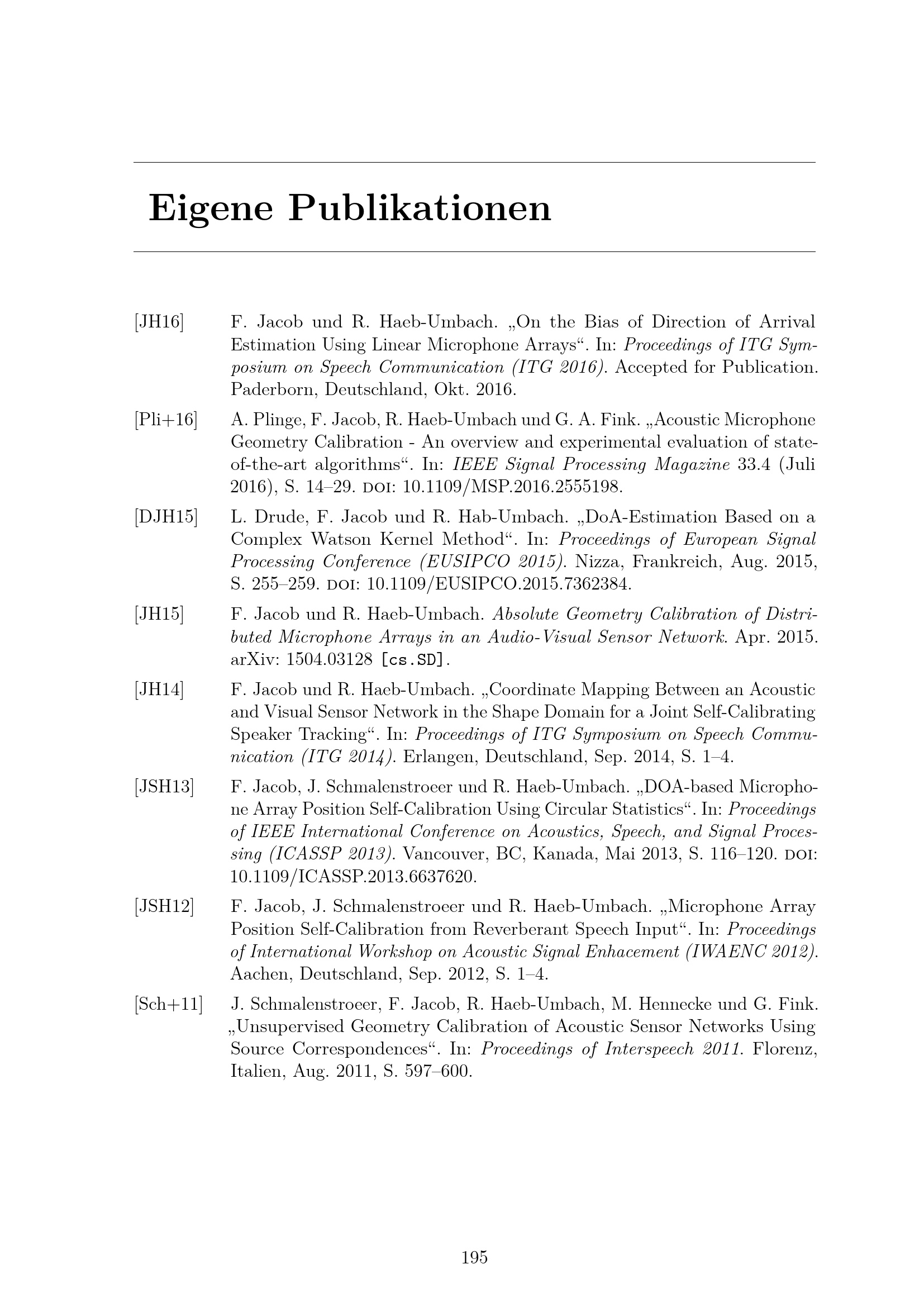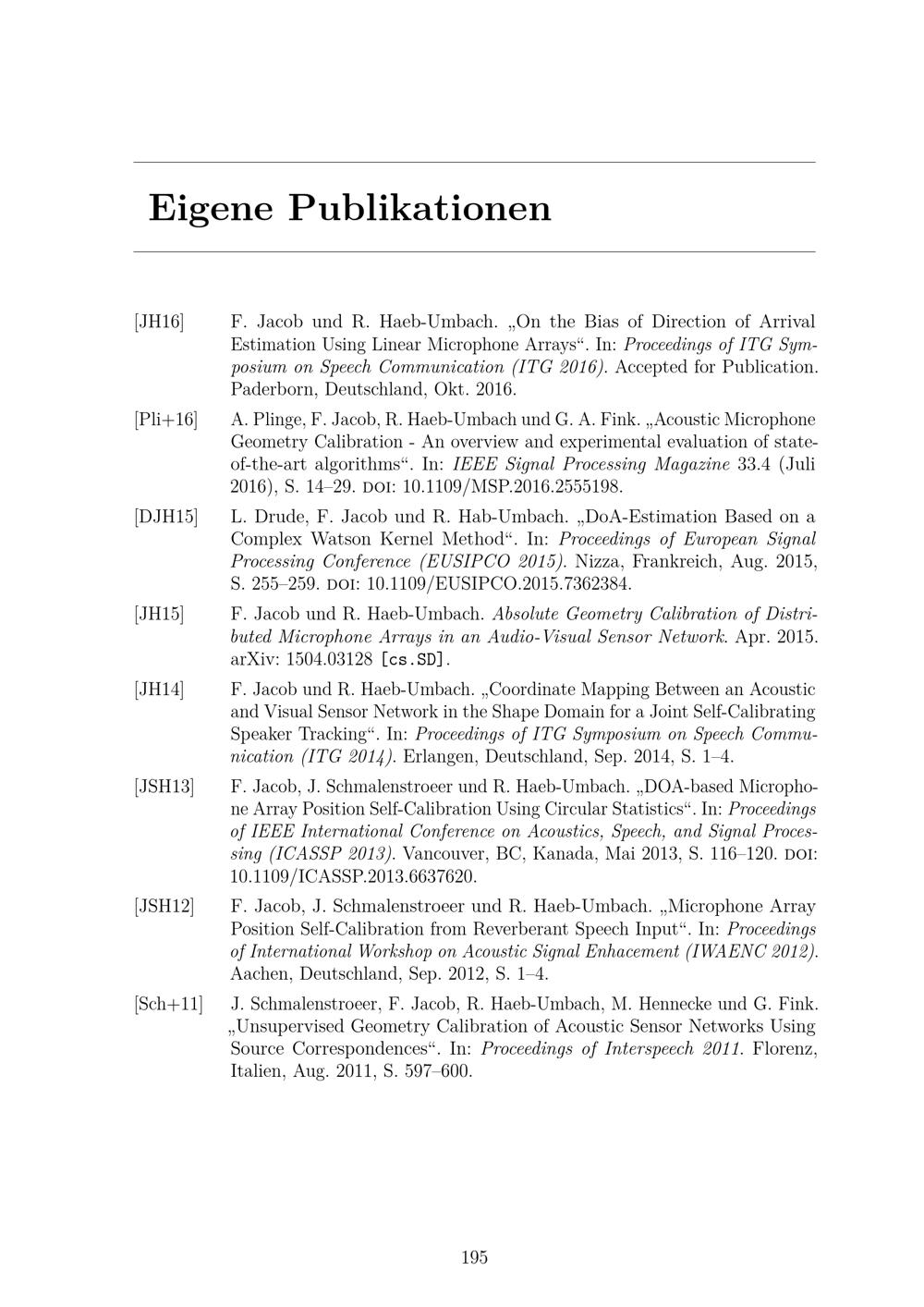 Geometriekalibrierung akustischer Sensornetze / von Dipl.-Ing. Florian Jacob ; Erster Gutachter: Prof. Dr.-Ing. Reinhold Häb-Umbach, Zweiter Gutachter: Prof. Dr. Peter Schreier