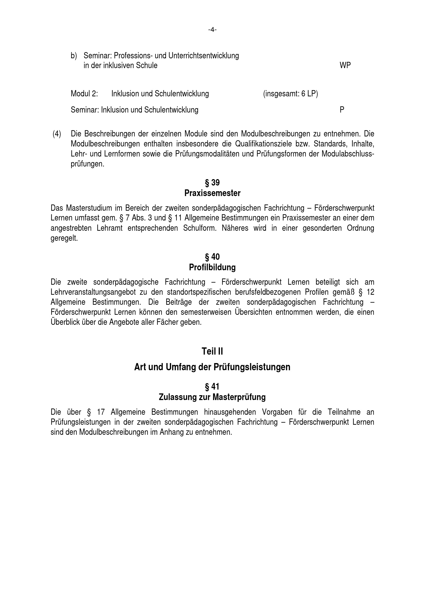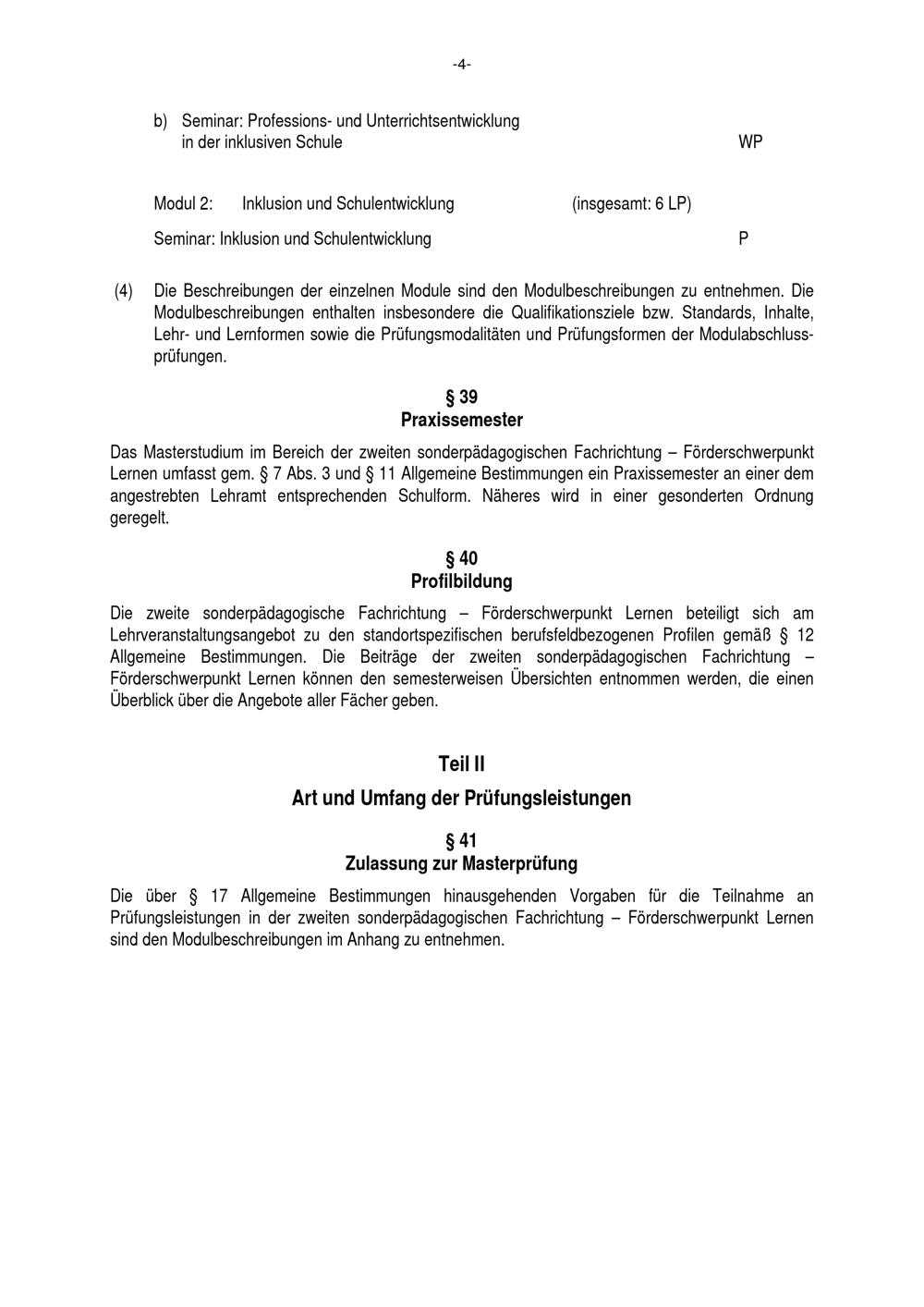Besondere Bestimmungen der Prüfungsordnung für den Masterstudiengang Lehramt für sonderpädagogische Förderung mit der zweiten sonderpädagogischen Fachrichtung Förderschwerpunkt Lernen an der Universität Paderborn : vom 17. März 2017