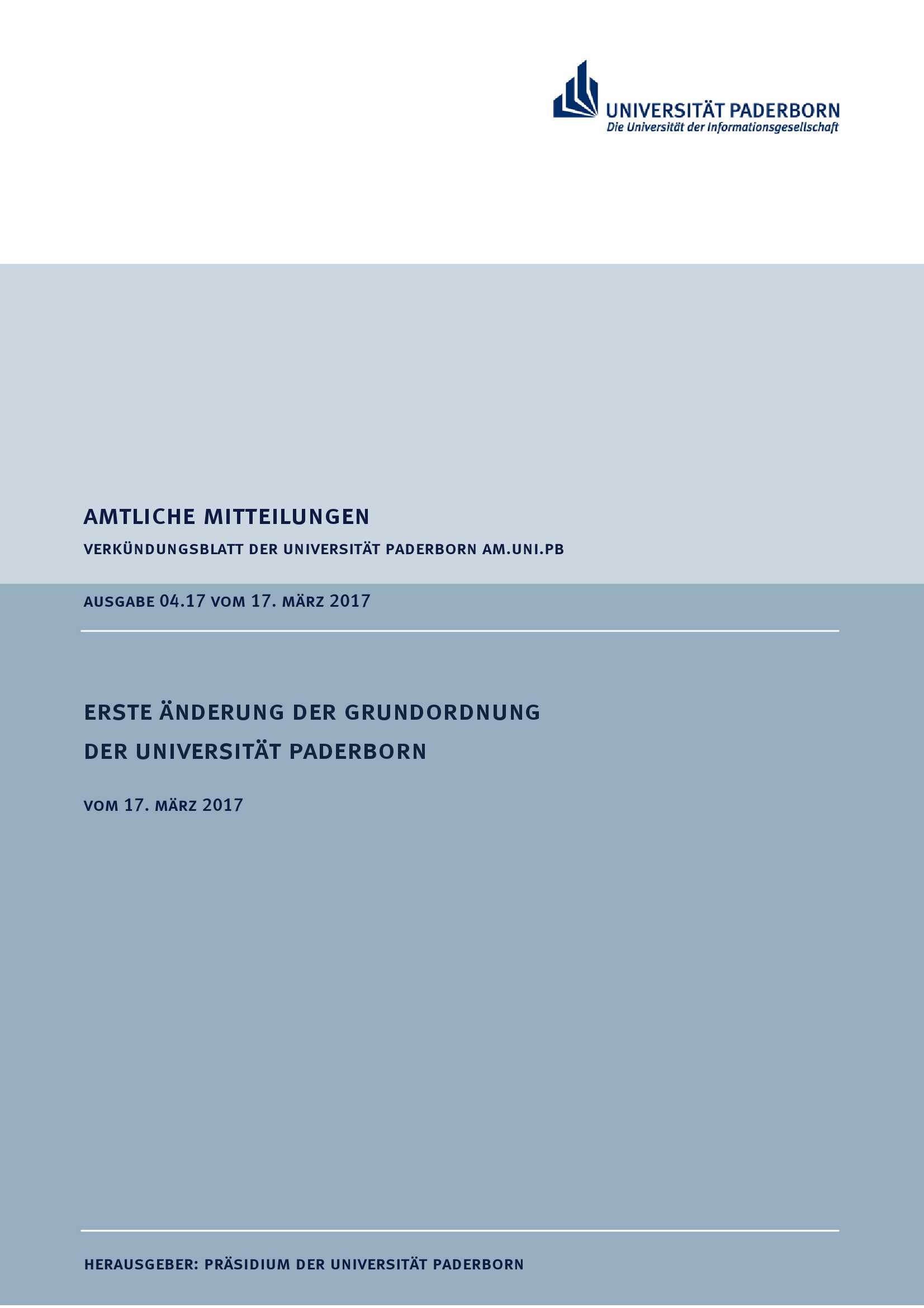 Erste Änderung der Grundordnung der Universität Paderborn : vom 17. März 2017