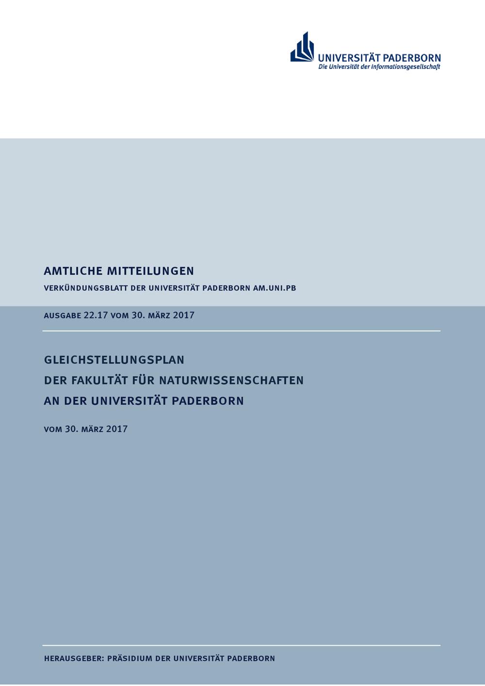 Gleichstellungsplan der Fakultät für Naturwissenschaften an der Universität Paderborn : vom 30. März 2017