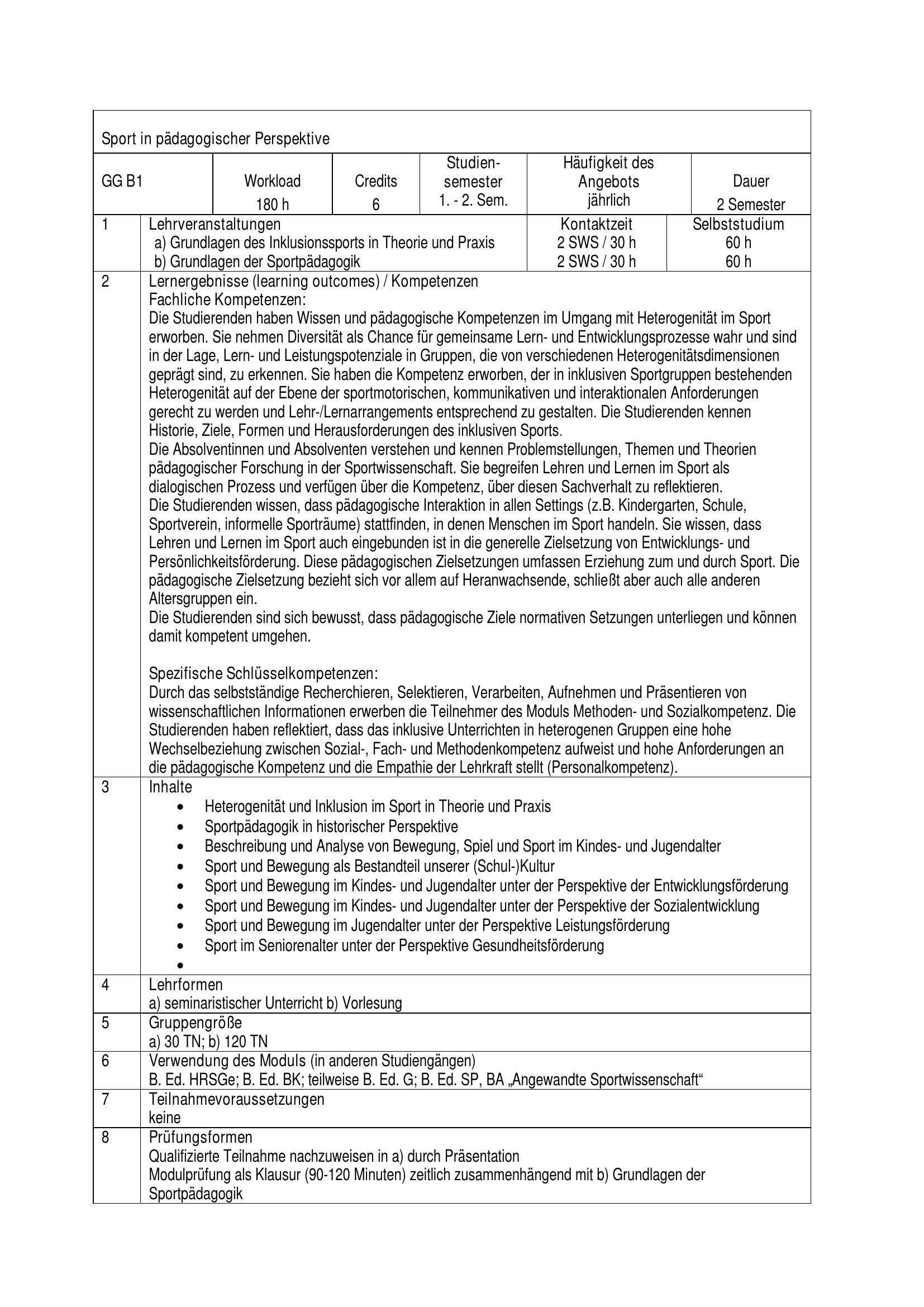 Besondere Bestimmungen der Prüfungsordnung für den Bachelorstudiengang Lehramt an Gymnasien und Gesamtschulen mit dem Unterrichtsfach Sport an der Universität Paderborn : vom 10. April 2017