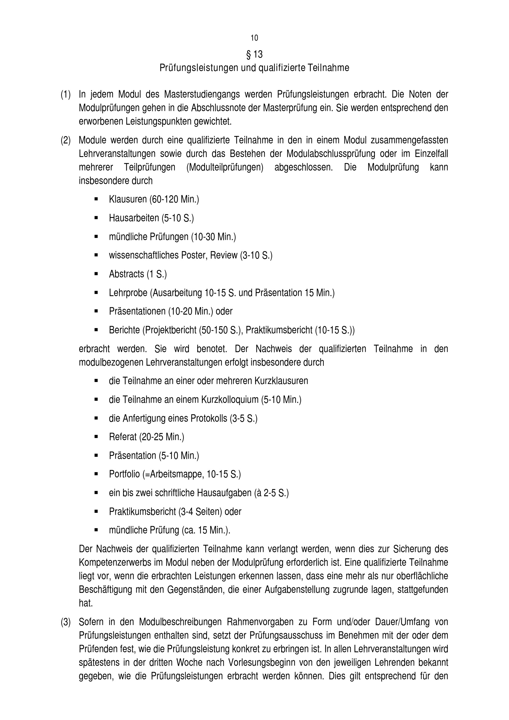 § 13 Prüfungsleistungen und qualifizierte Teilnahme