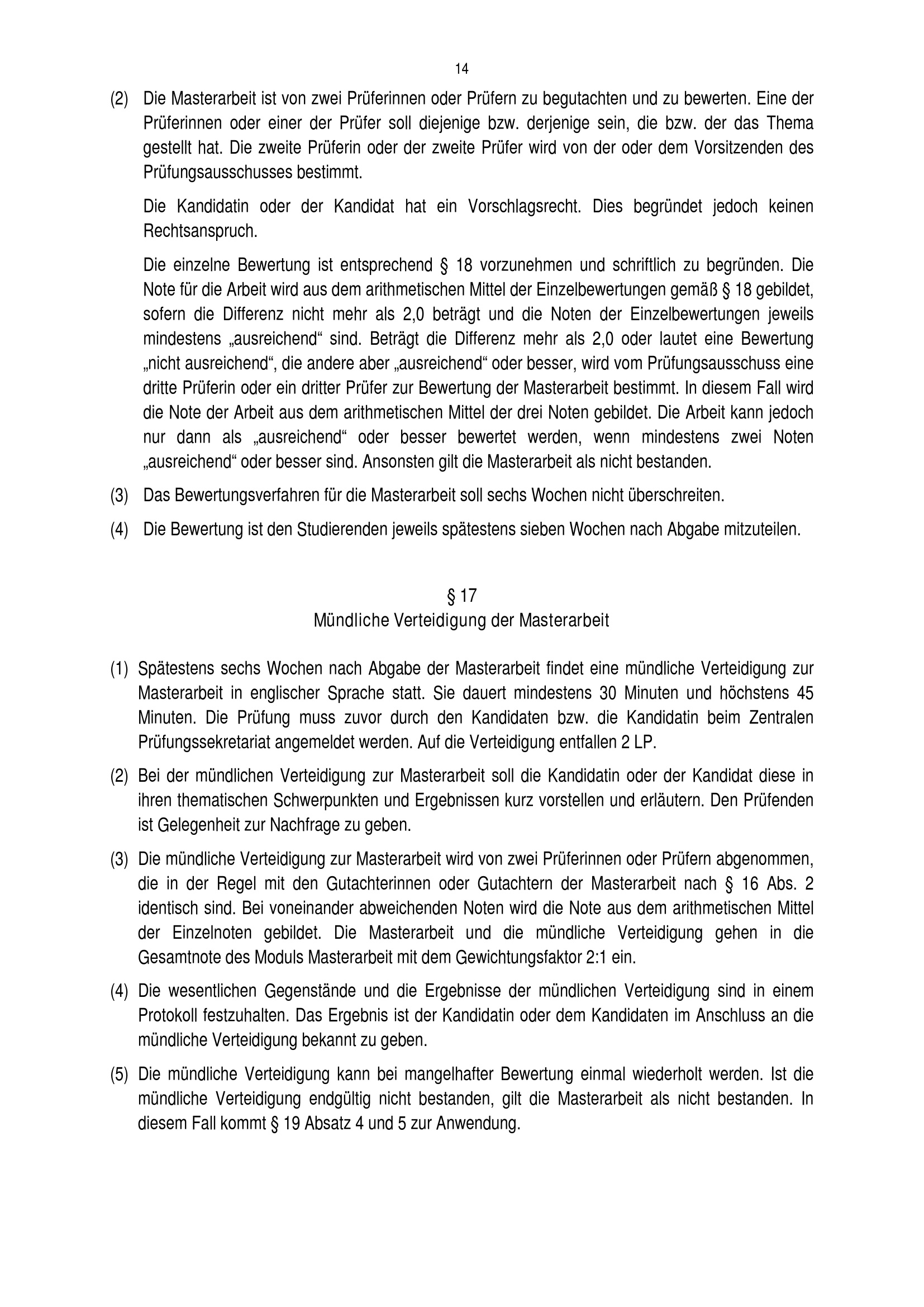§ 17 Mündliche Verteidigung der Masterarbeit