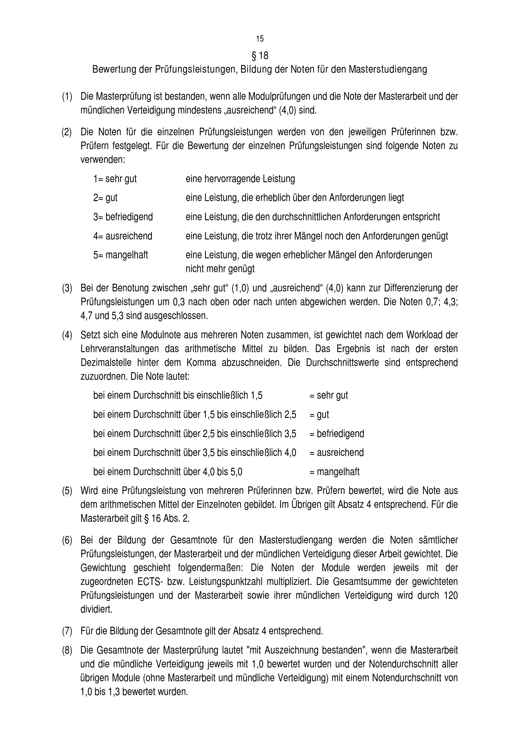 § 18 Bewertung der Prüfungsleistungen, Bildung der Noten für den Masterstudienga[...]