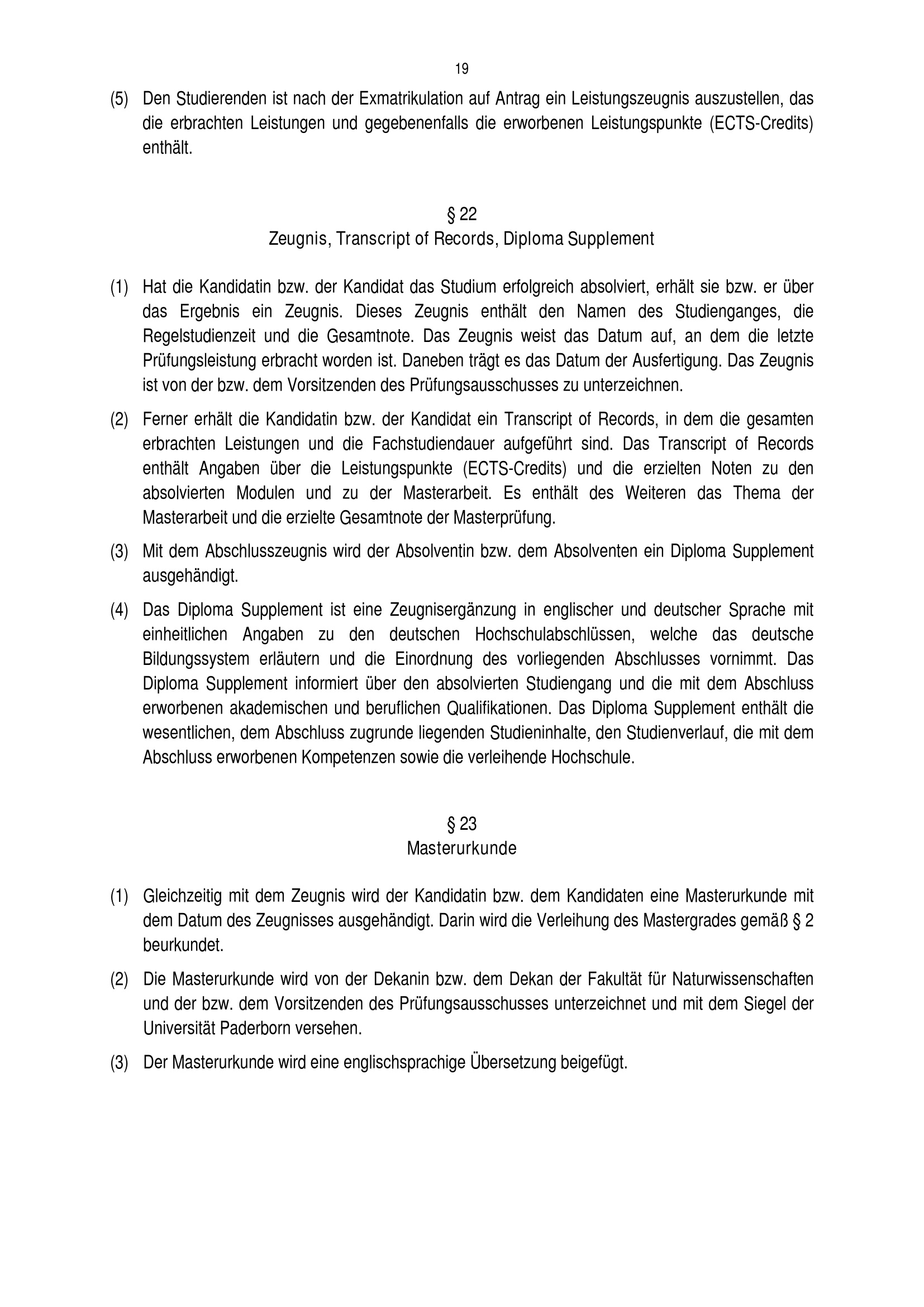 § 22 Zeugnis, Transcript of Records, Diploma Supplement
