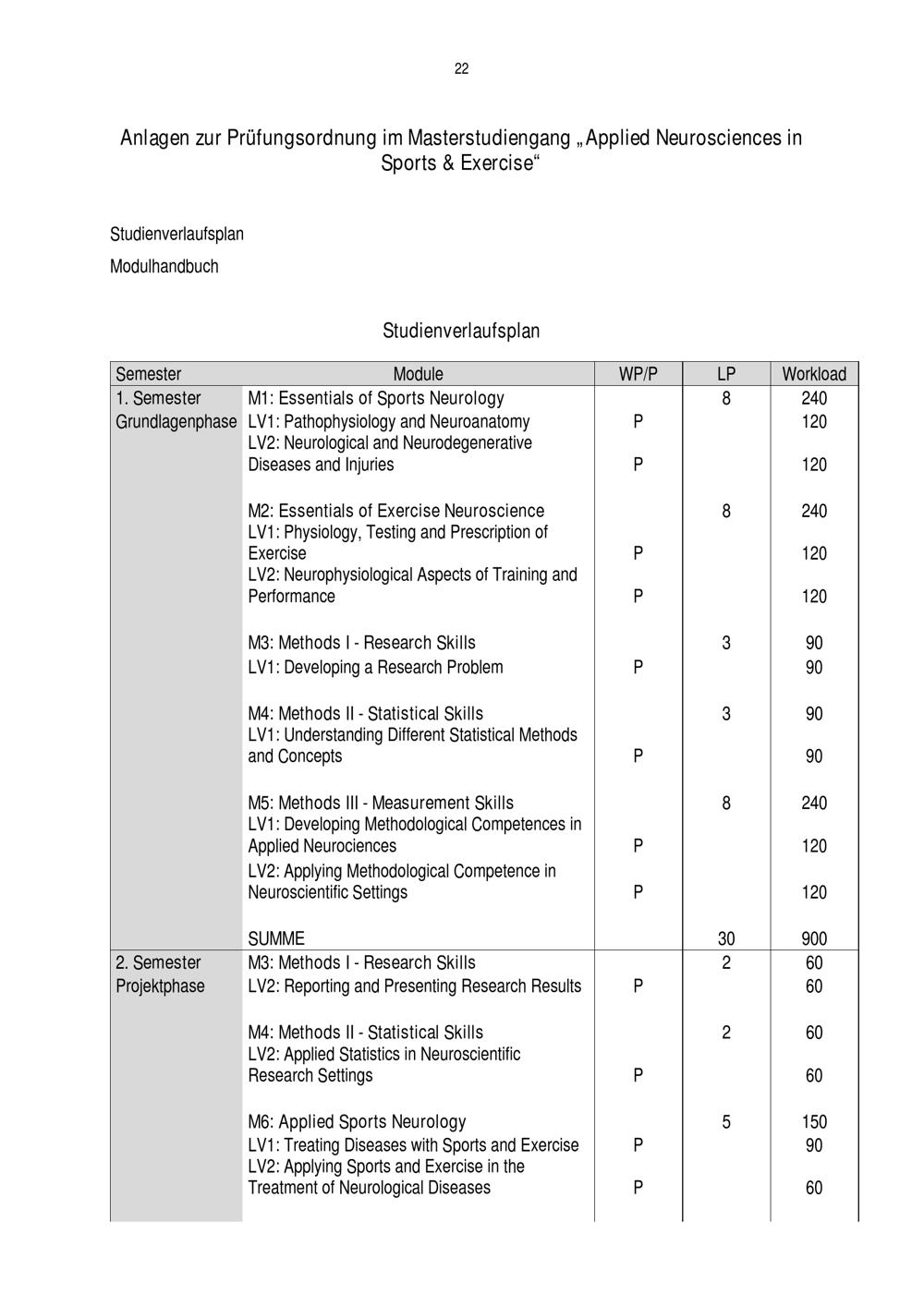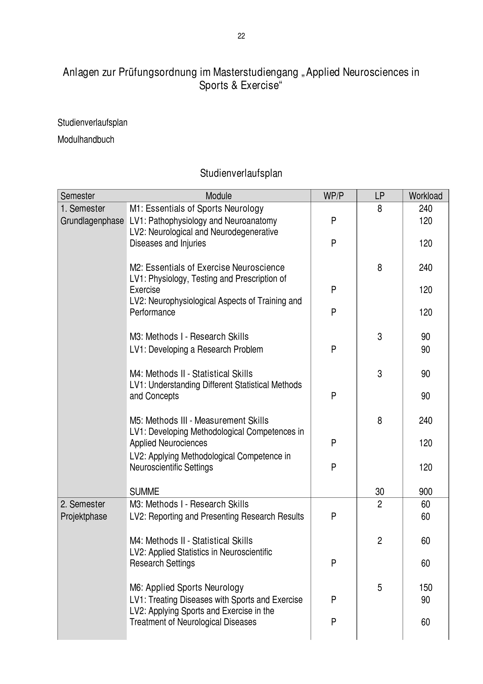 Anlagen zur Prüfungsordnung im Masterstudiengang „Applied Neurosciences in Sports[...]