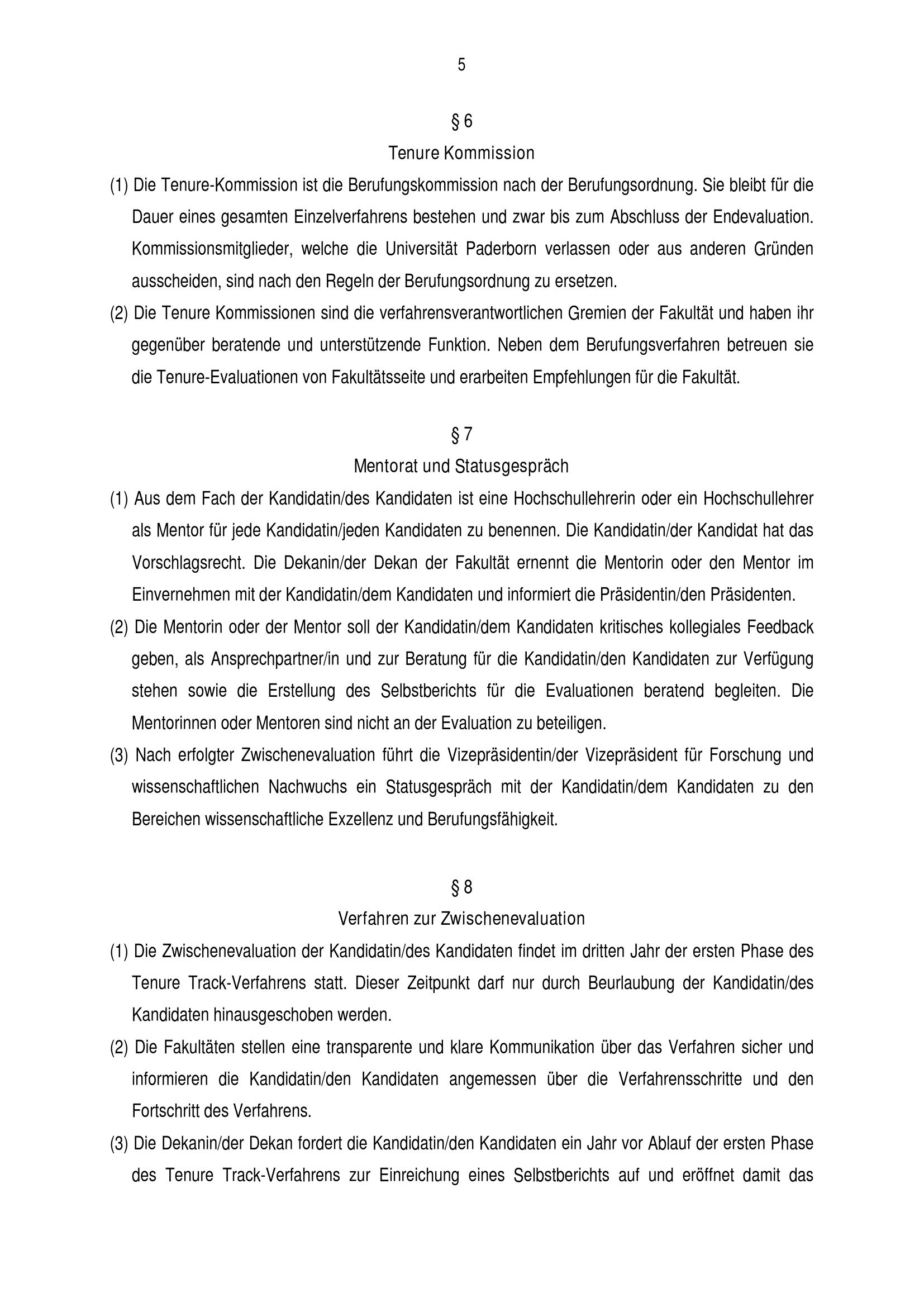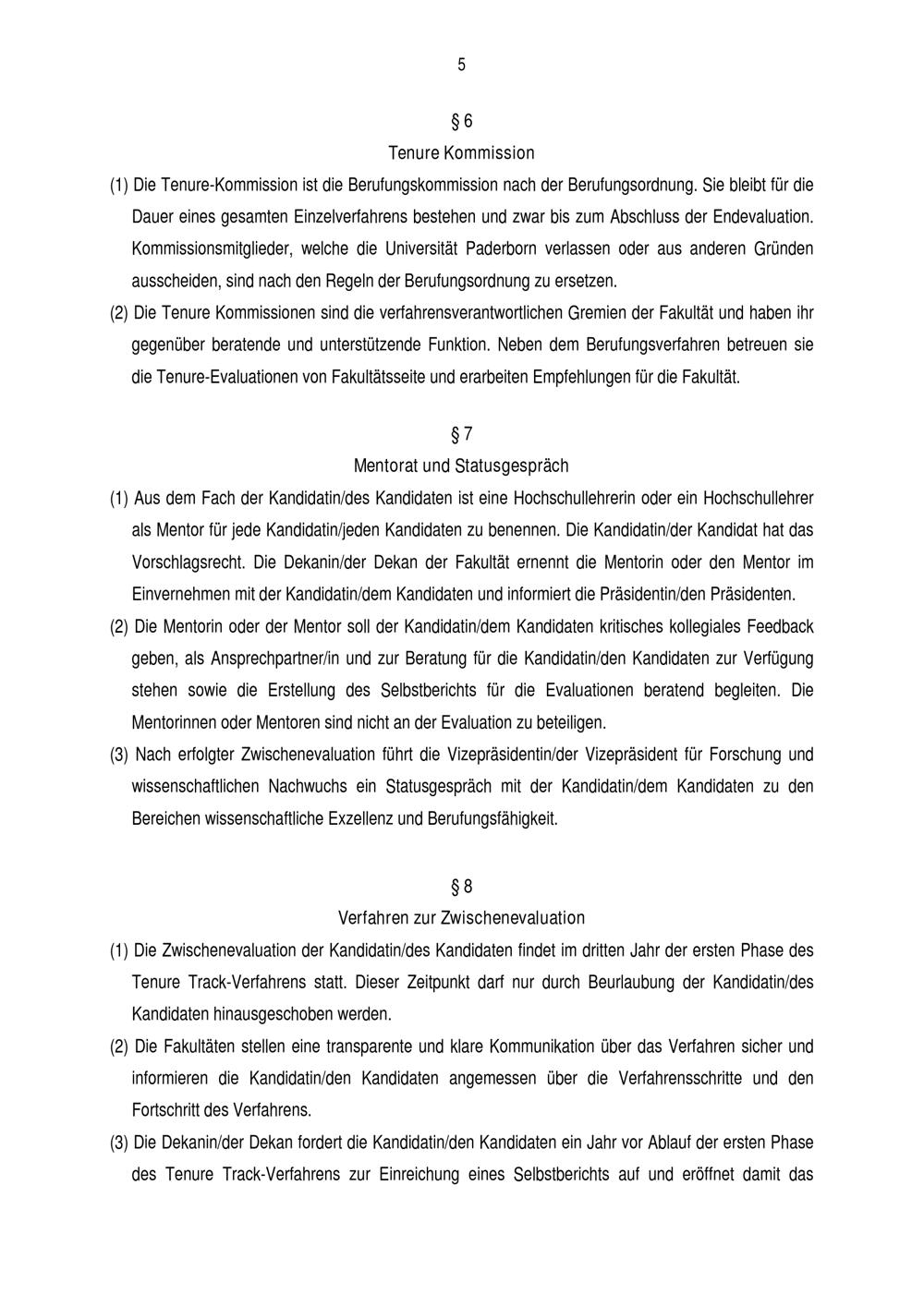 Ordnung zur Qualitätssicherung in Tenure Track-Verfahren der Universität Paderborn [Tenure Track-Ordnung] : vom 17. Mai 2017