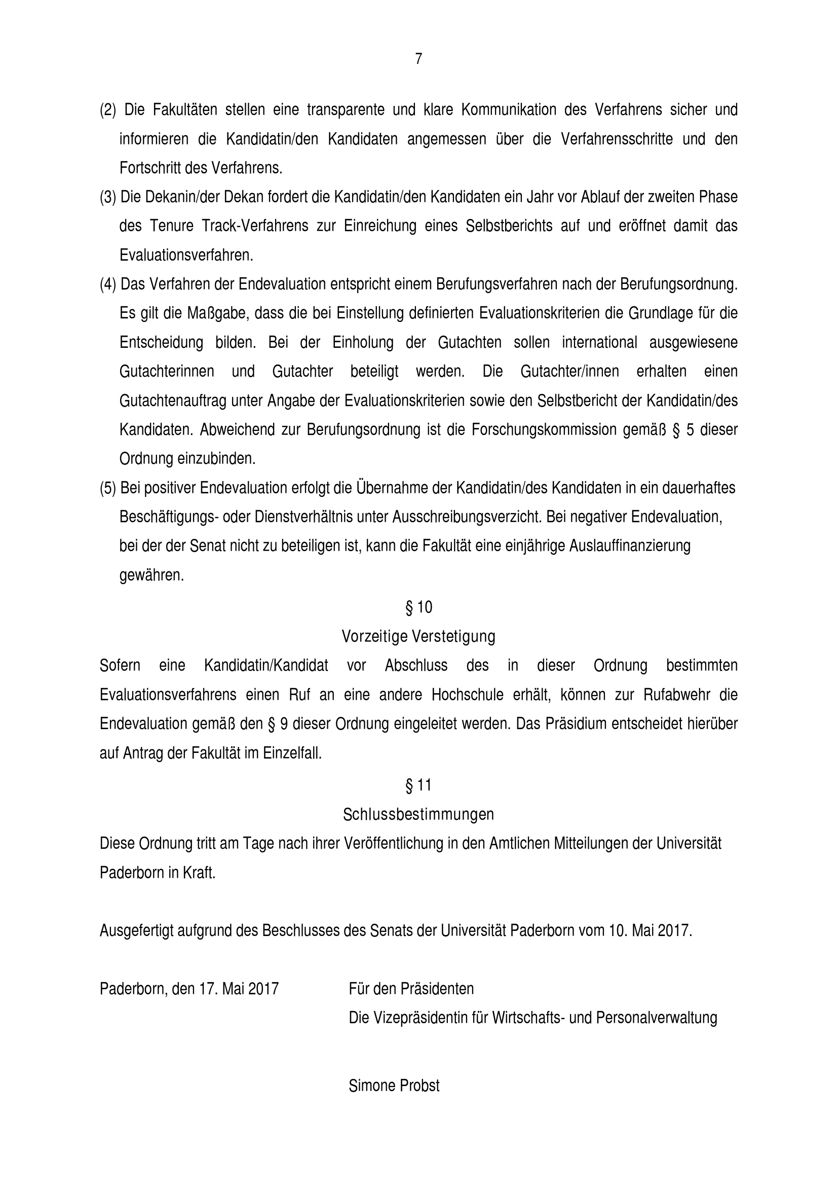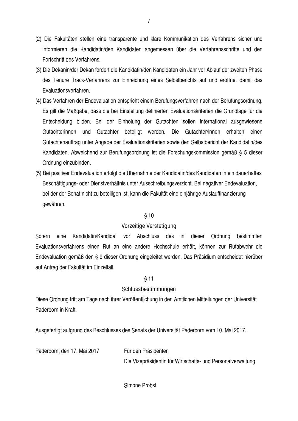 Ordnung zur Qualitätssicherung in Tenure Track-Verfahren der Universität Paderborn [Tenure Track-Ordnung] : vom 17. Mai 2017