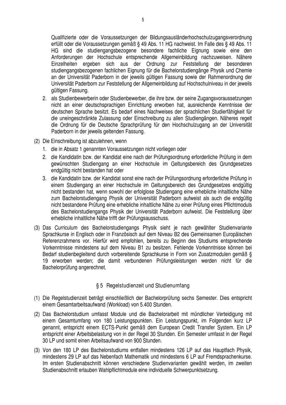 Prüfungsordnung für den Bachelorstudiengang Physik der Fakultät für Naturwissenschaften an der Universität Paderborn : vom 16. Juni 2017