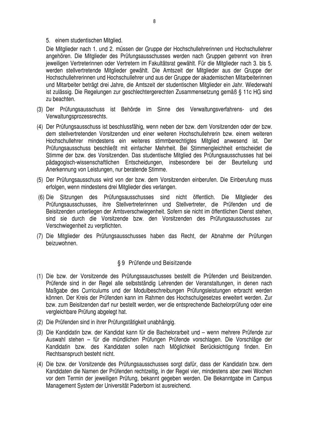Prüfungsordnung für den Bachelorstudiengang Physik der Fakultät für Naturwissenschaften an der Universität Paderborn : vom 16. Juni 2017