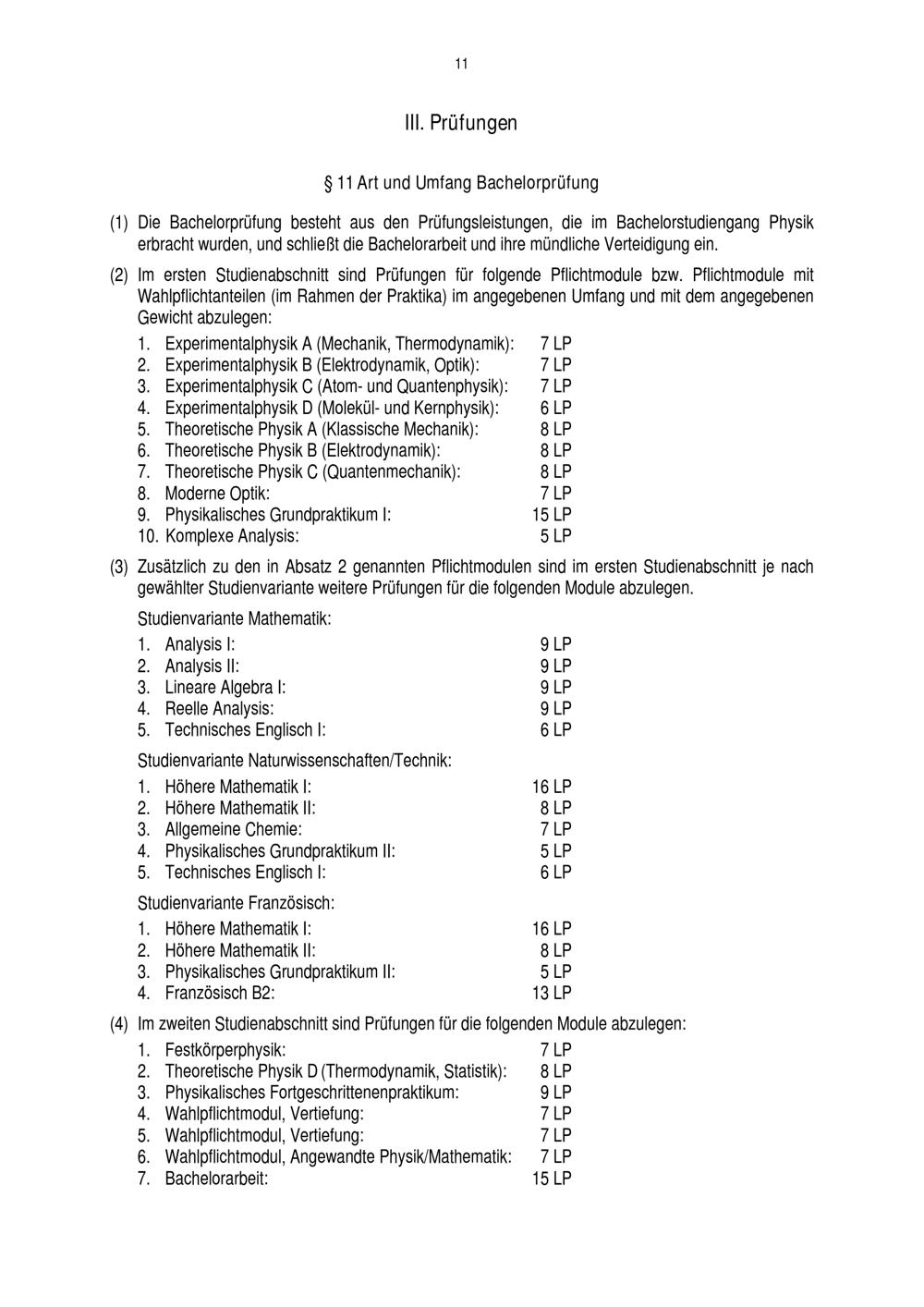 Prüfungsordnung für den Bachelorstudiengang Physik der Fakultät für Naturwissenschaften[...]