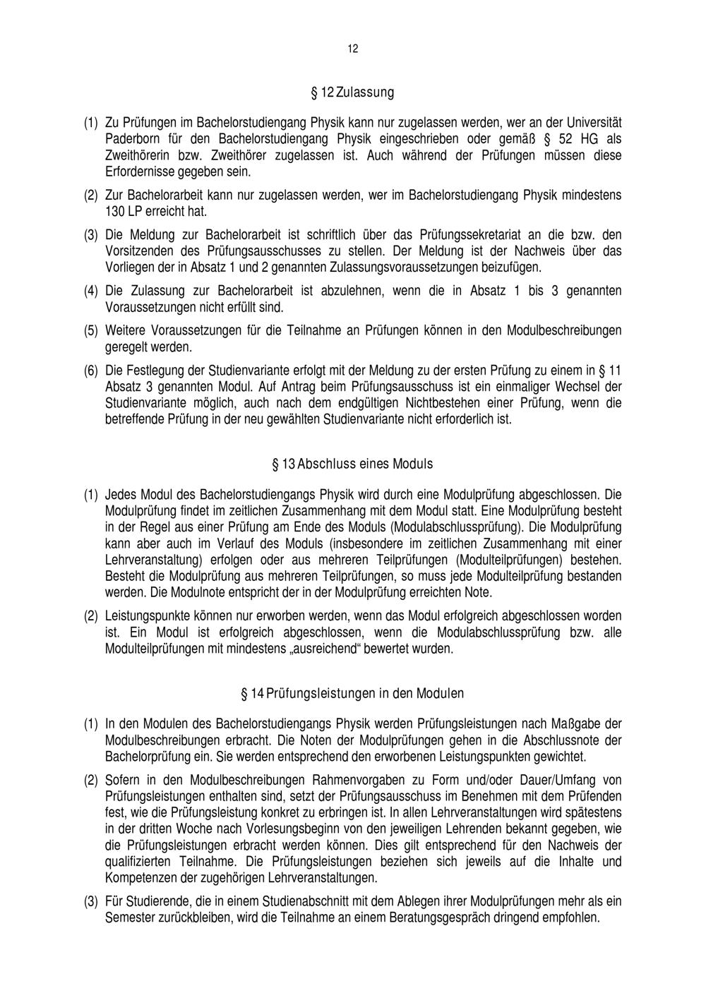 Prüfungsordnung für den Bachelorstudiengang Physik der Fakultät für Naturwissenschaften[...]
