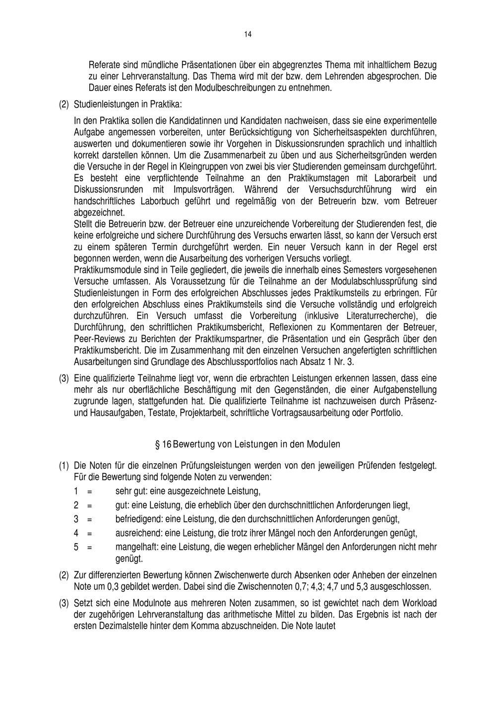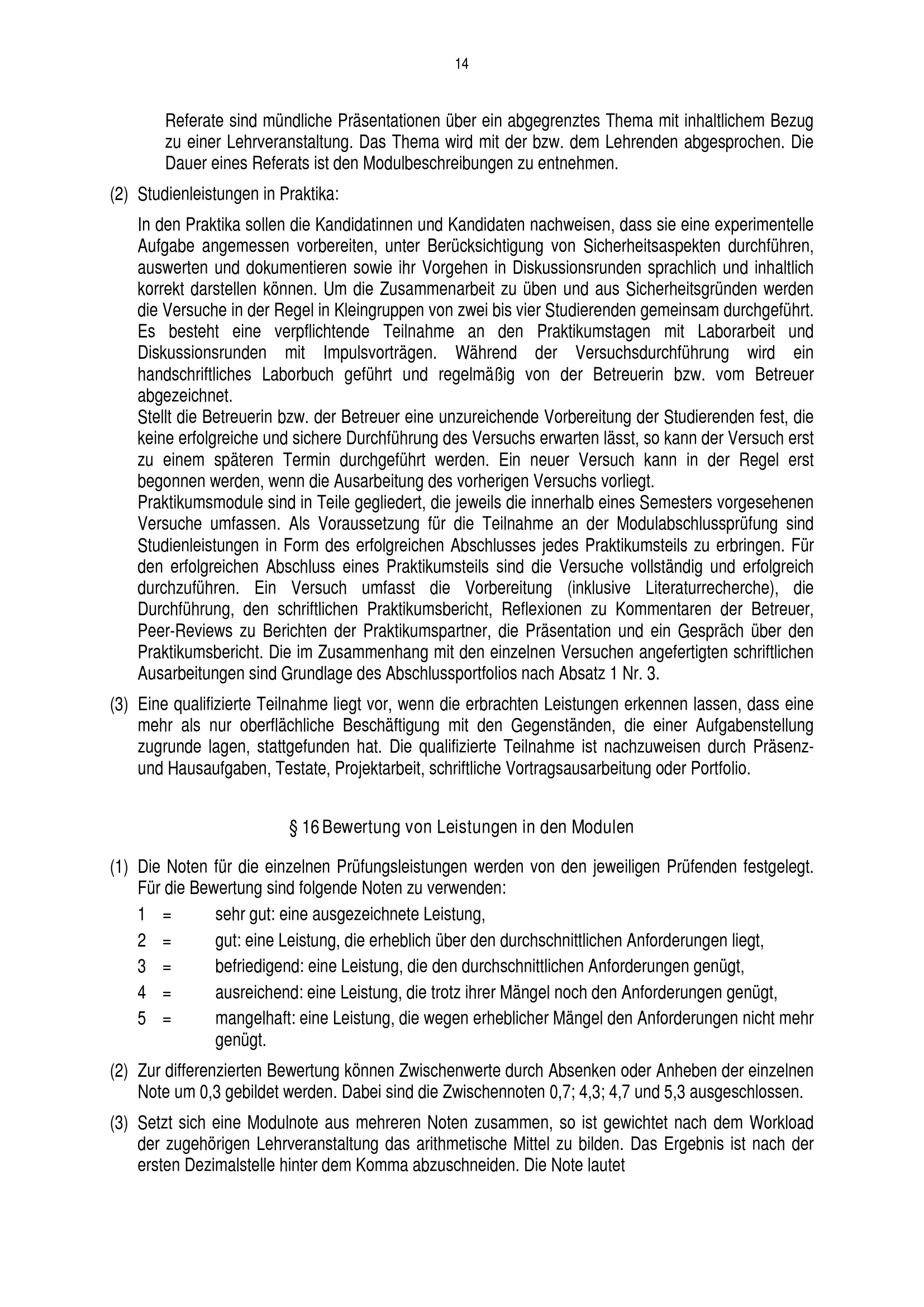 § 16 Bewertung von Leistungen in den Modulen