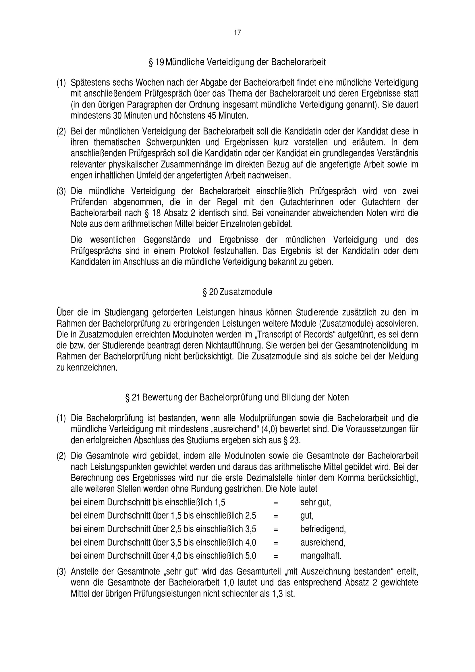 § 19 Mündliche Verteidigung der Bachelorarbeit