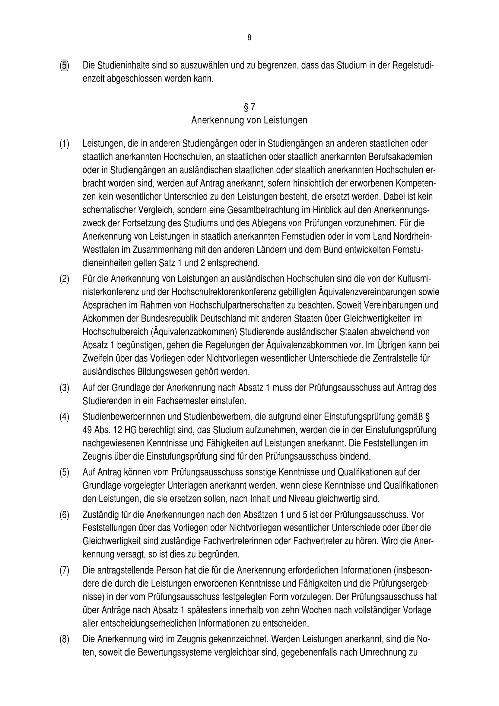 § 7 Anerkennung von Leistungen